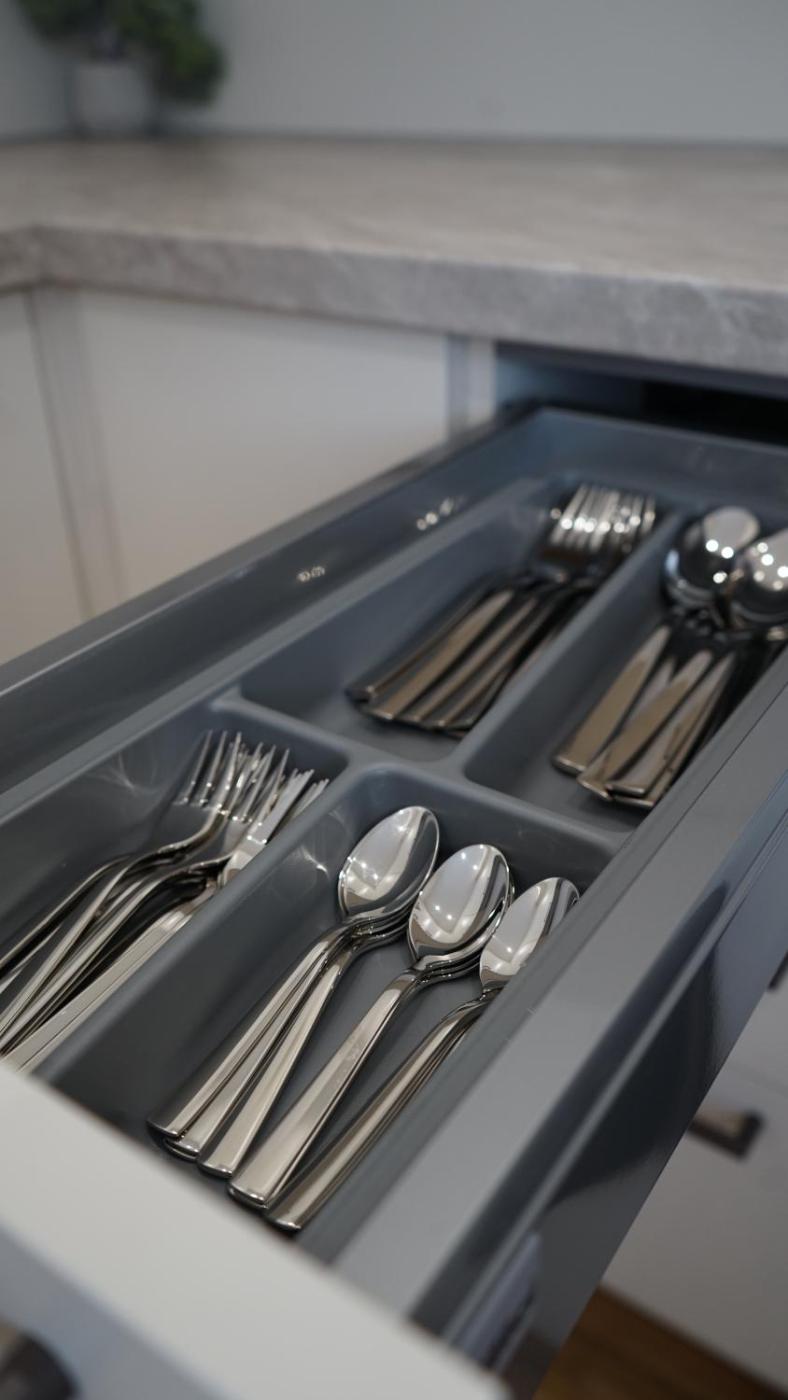 Es gibt einen Kühlschrank, einen Geschirrspüler und einen Ofen sowie auch eine Kaffeemaschine in der Küche.