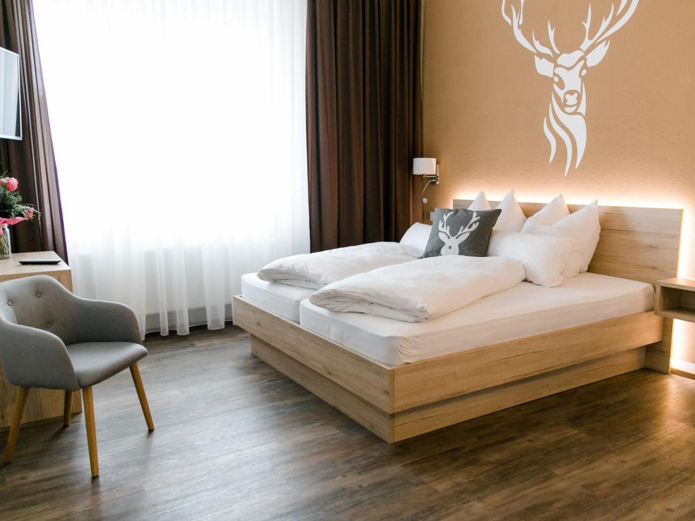 Deluxe Zimmer. The double room offers a seating area, a wardrobe, as well as a private bathroom featuring a walk-in shower and a hairdryer. The unit offers 2 beds. ;