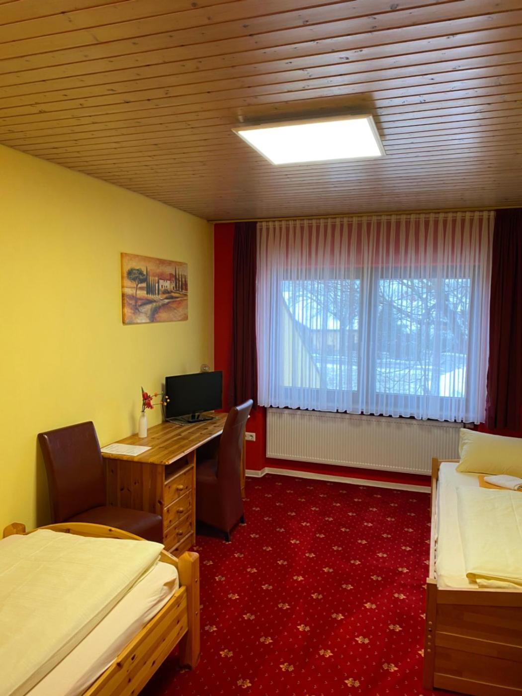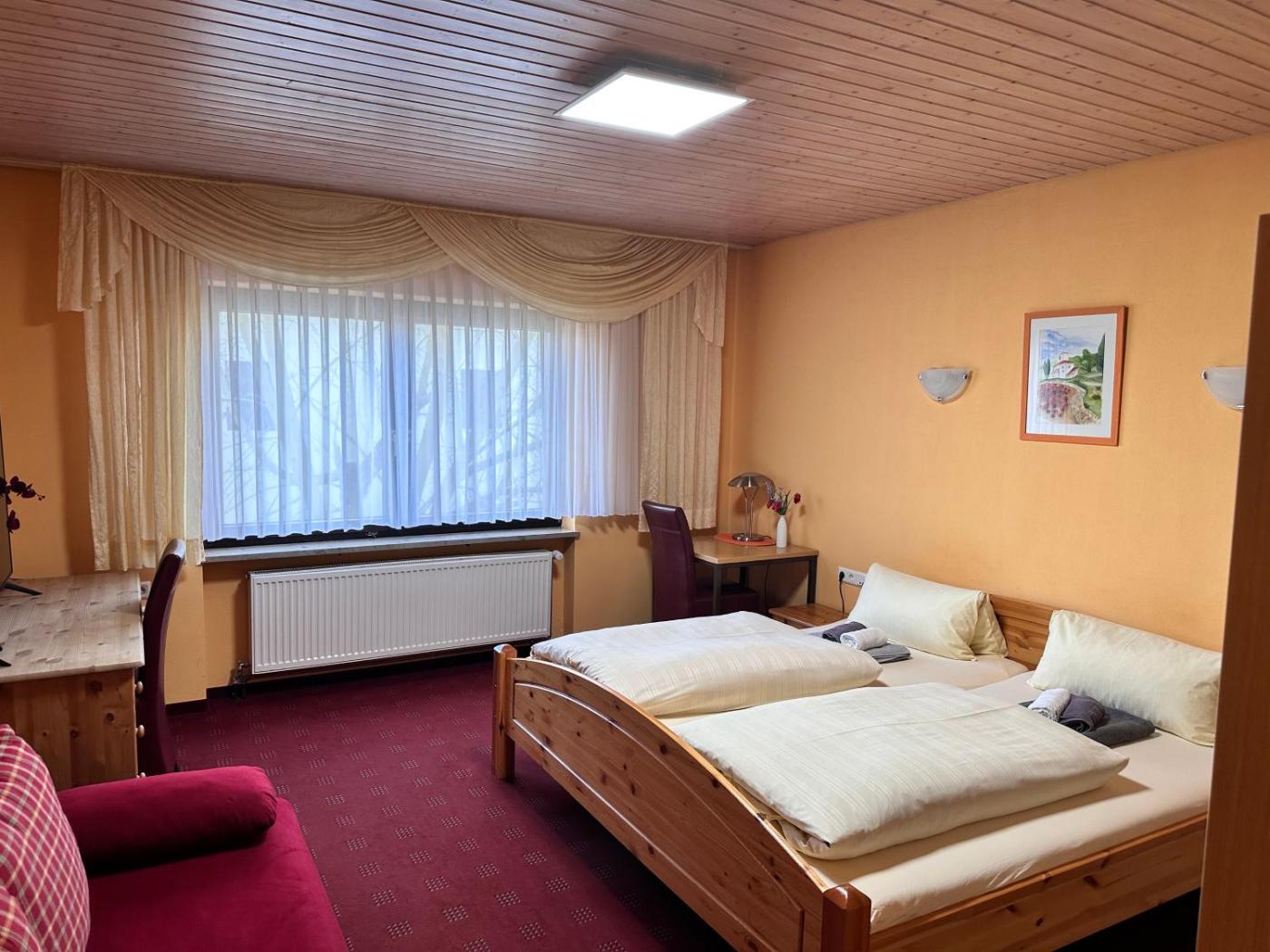 Doppelzimmer. The double room has carpeted floors, a seating area with a flat-screen TV, a dining area, a wardrobe, as well as heating. The unit has 1 bed.