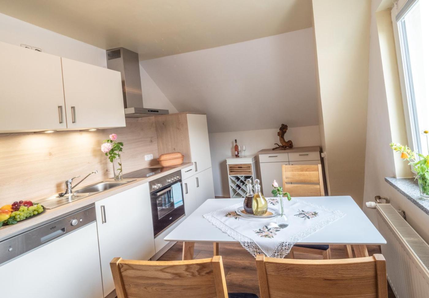 Apartment - Erdgeschoss. Die geräumige Ferienwohnung verfügt über einen eigenen Eingang, 1 Wohnzimmer, 1 separates Schlafzimmer und 1 Bad mit einer ebenerdigen Dusche. In der gut ausgestatteten Küche mit einem Kochfeld, einem Kühlschrank, einem Geschirrspüler und Küchenutensilien können Sie sich Mahlzeiten zubereiten. Zu den weiteren Annehmlichkeiten dieser Ferienwohnung gehören Tee- und Kaffeezubehör, ein Sitzbereich, ein Flachbild-Sat-TV sowie WeinChampagner. Die Wohneinheit ist mit 2 Betten ausgestattet. ;