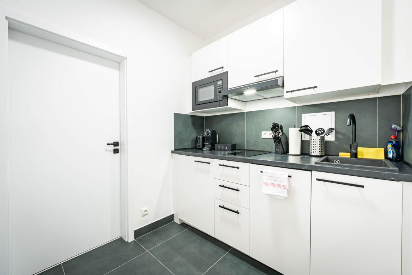 Apartment mit 1 Schlafzimmer. Featuring a private entrance, this apartment also consists of 1 bedroom, a seating area and 1 bathroom with a shower and a hairdryer. In the kitchen, guests will find a stovetop, a refrigerator, a dishwasher and kitchenware. The apartment provides soundproof walls, a tea and coffee maker, a dining area, a wardrobe and a flat-screen TV with streaming services. The unit offers 1 bed. ;
