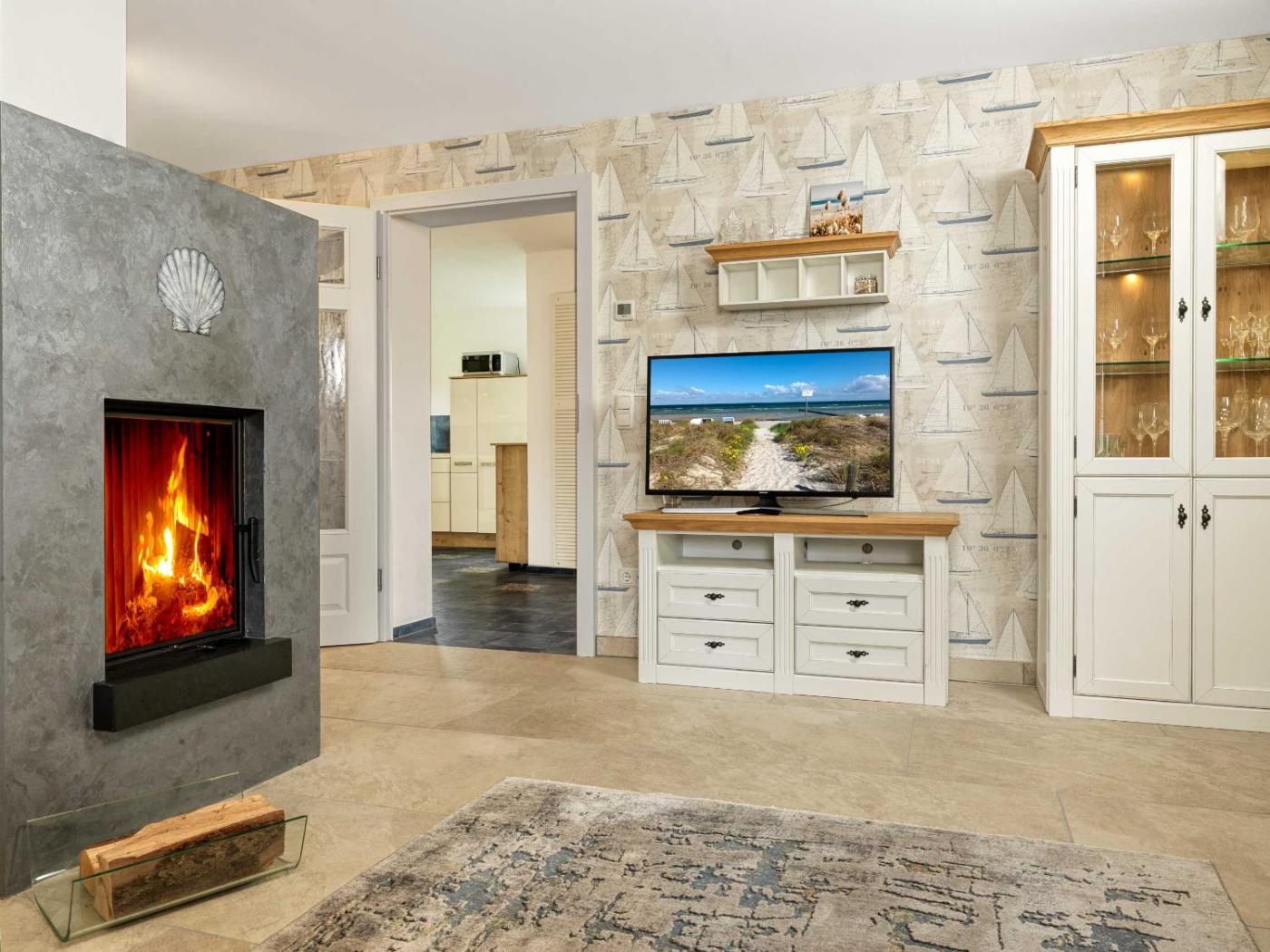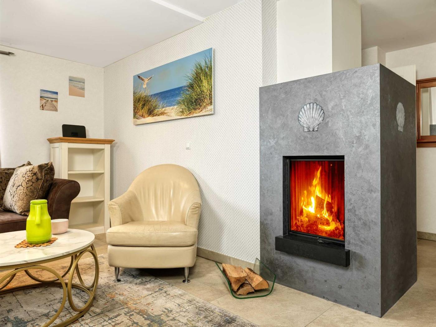 Apartment mit Meerblick. Guests will have a special experience as this apartment features a fireplace. Featuring 2 bedrooms, this spacious apartment offers 1 bathroom with a shower, a seating area and terraceyou can relax. Guests will find a stovetop, a refrigerator, a dishwasher and kitchenware in the kitchen. The apartment also has a barbecue. The apartment offers a washing machine, a coffee machine, a wardrobe, a TV, as well as sea views. The unit has 2 beds.