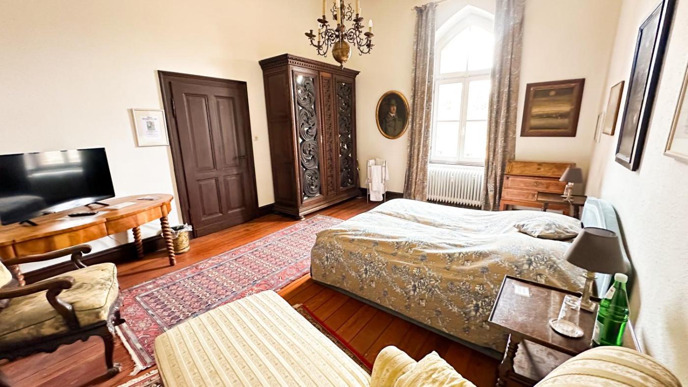 Doppelzimmer mit Gemeinschaftsbad. The double room includes a shared bathroom fitted with a hairdryer. This double room features a TV. The unit has 1 bed. ;
