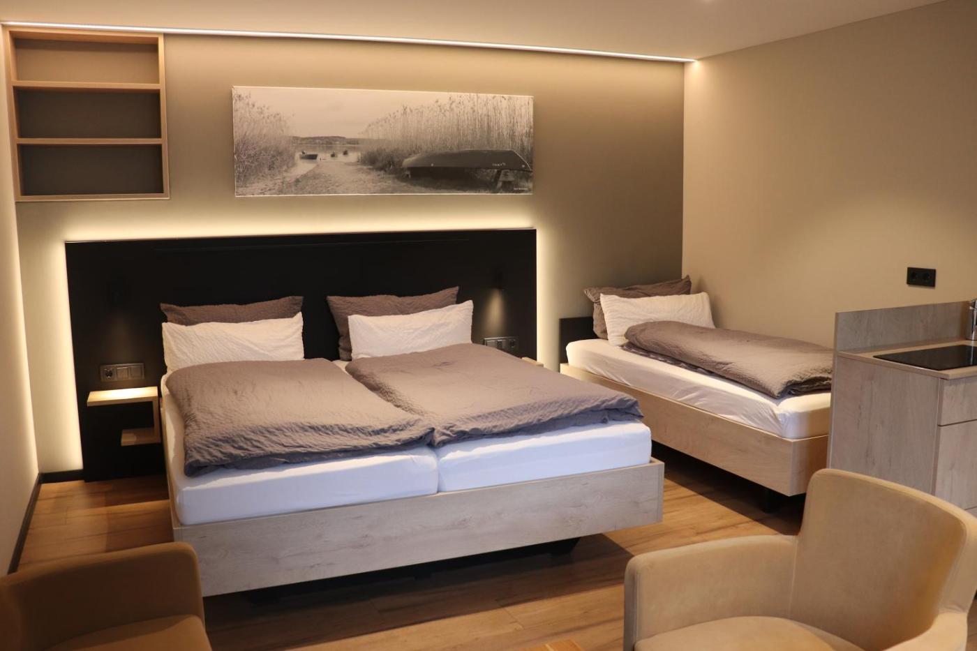 Doppelzimmer mit Balkon. The kitchenette features a stovetop, a refrigerator and kitchenware. The spacious double room features a tea and coffee maker, a wardrobe, a balcony with lake views as well as a private bathroom boasting a walk-in shower. The unit has 1 bed.