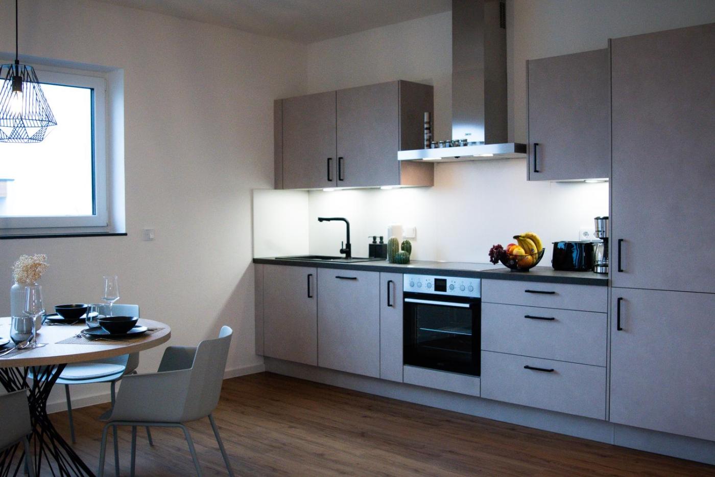 Apartment mit 1 Schlafzimmer. Guests can make meals in the kitchen that features a stovetop, a refrigerator, kitchenware and an oven. The spacious apartment features a washing machine, a coffee machine, a seating area as well as a terrace with garden views. The unit has 2 beds.