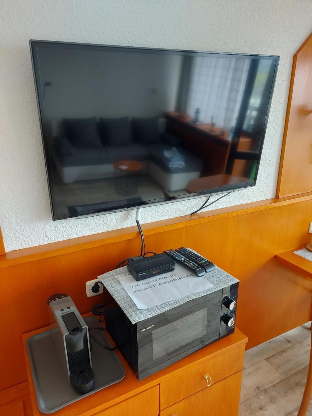 Apartment mit Blick auf die Berge. This apartment is comprised of a kitchenette, a seating area, 1 separate bedroom and 1 bathroom with a shower and a hairdryer. The well-fitted kitchenette features a stovetop, a refrigerator, kitchenware and a microwave. Featuring a balcony with mountain views, this apartment also offers a coffee machine and a flat-screen TV with cable channels. The unit offers 2 beds.
