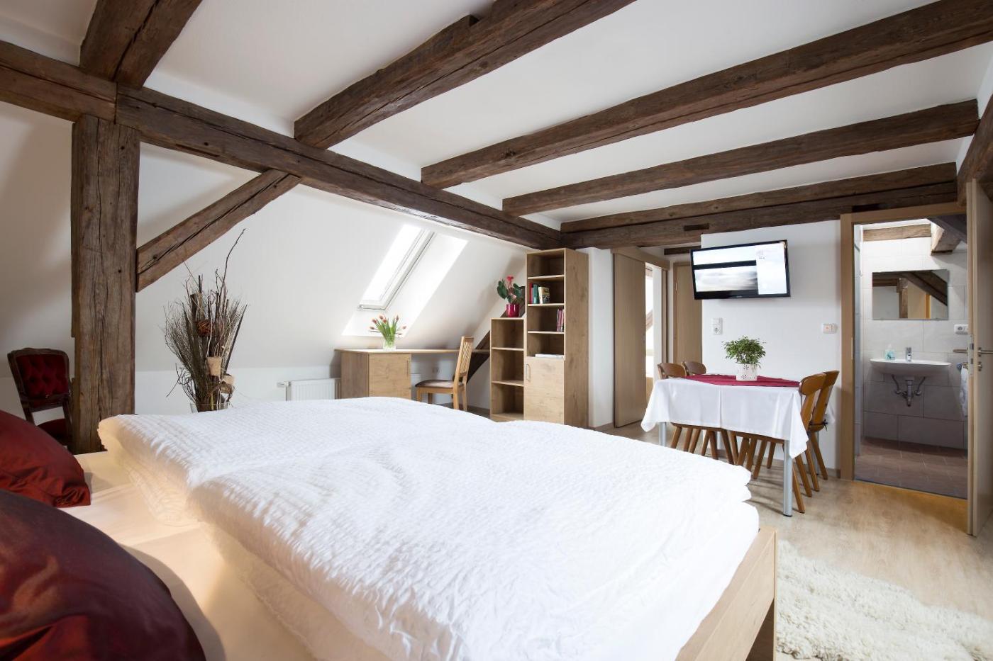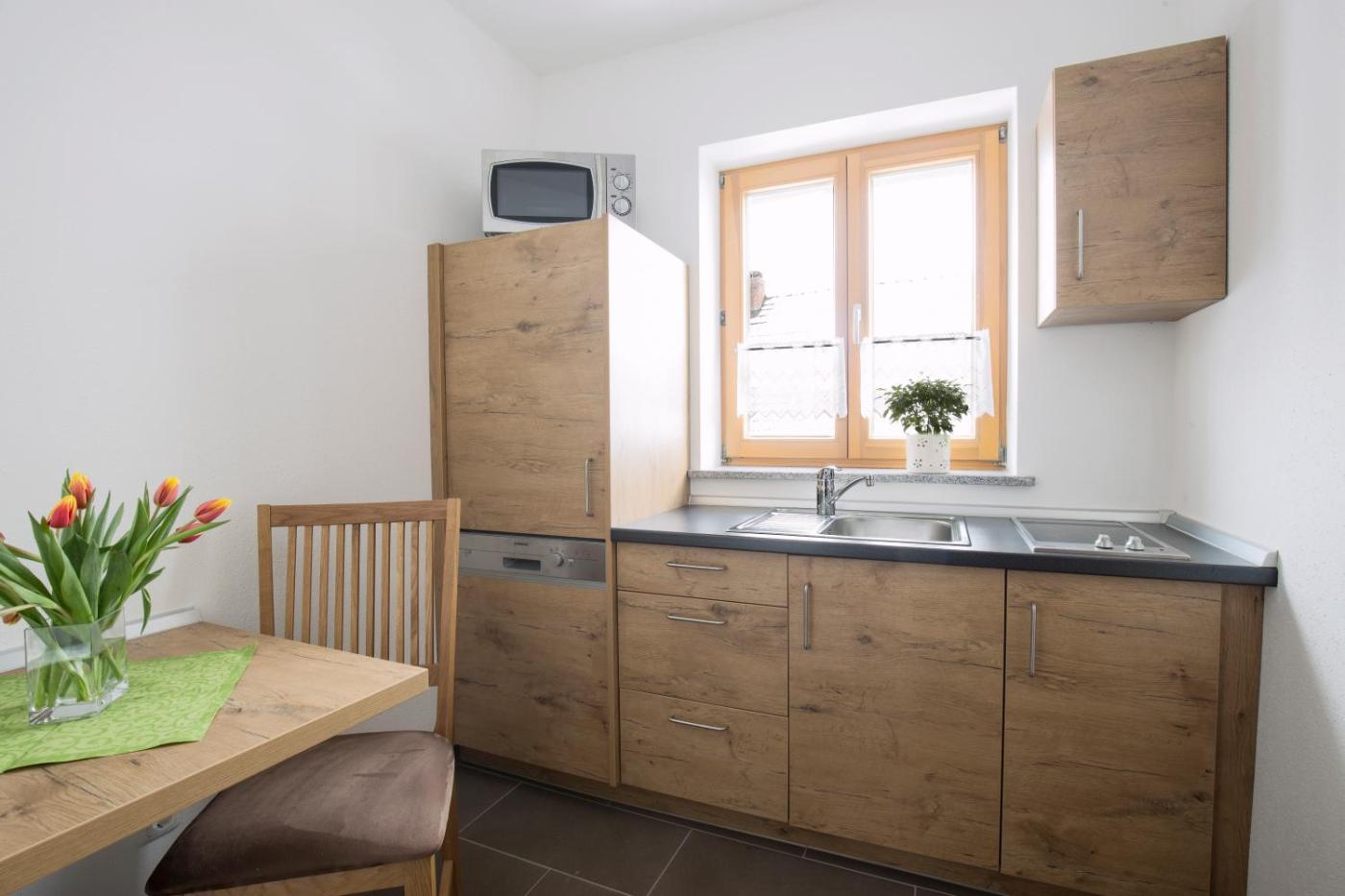 In der Unterkunft Fischhof Beer ist jedes Zimmer ausgestattet mit einem Schreibtisch. Hier sind die Zimmer ausgestattet mit einem eigenen Badezimmer – einige Zimmer sind darüber hinaus versehen mit einer Küche mit einem Kühlschrank. Die Wohneinheiten verfügen über einen Kleiderschrank.