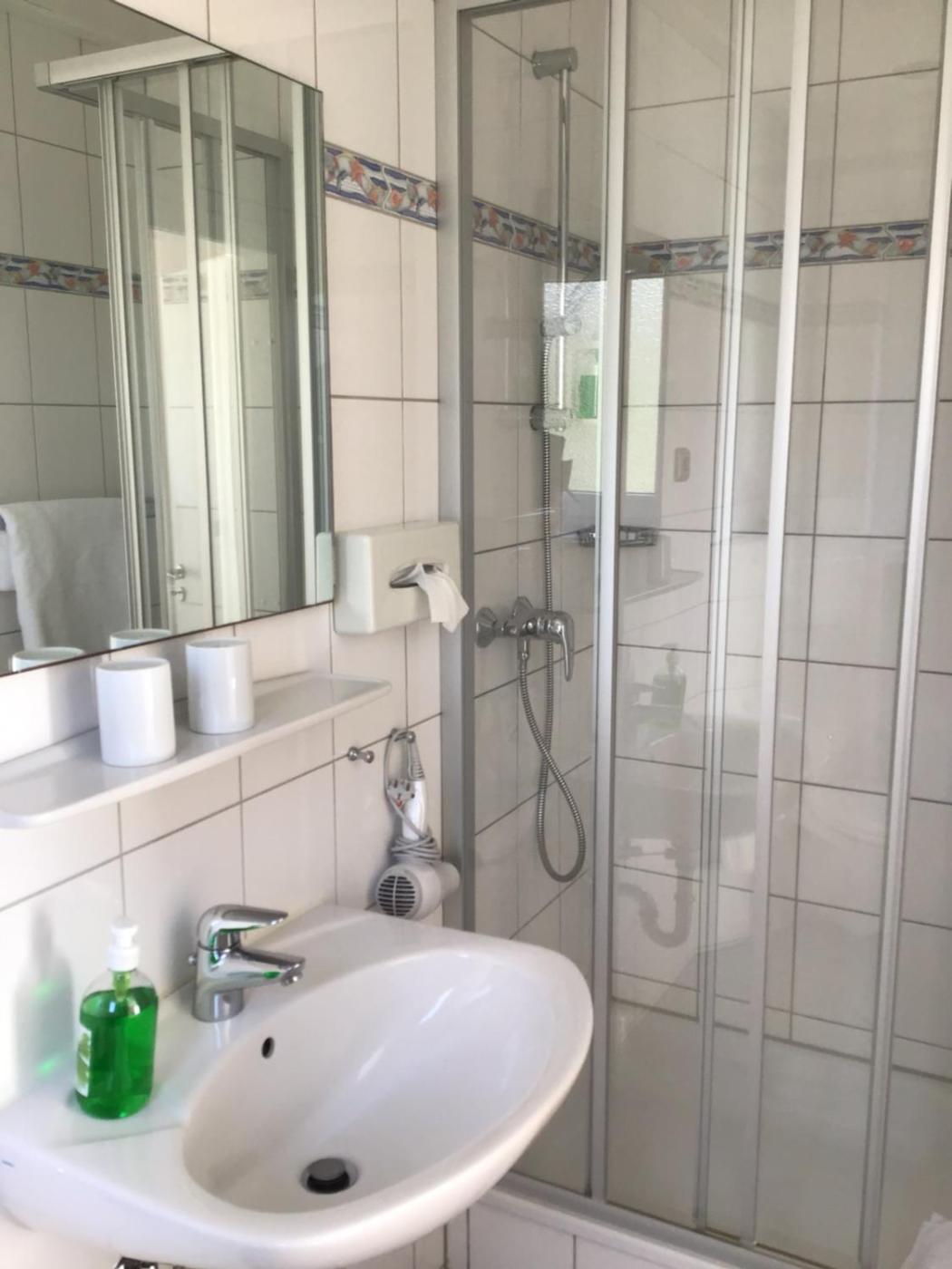 Einzelzimmer mit Dusche. Featuring free toiletries, this single room includes a private bathroom with a shower and a hairdryer. The single room features a flat-screen TV with cable channels, a tea and coffee maker, a seating area, a wardrobe as well as garden views. The unit has 1 bed. ;
