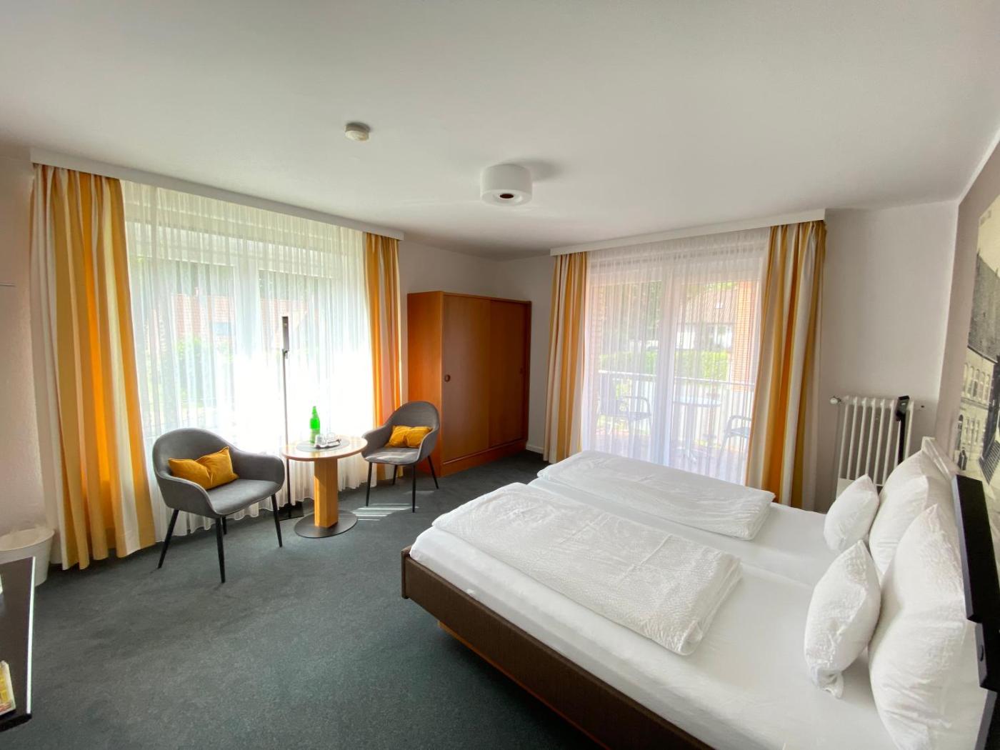 Doppelzimmer mit eigenem Bad. Dieses Doppelzimmer verfügt über einen Flachbild-Kabel-TV, ein eigenes Bad sowie einen Balkon mit Gartenblick. In der Wohneinheit befindet sich 1 Bett. ;