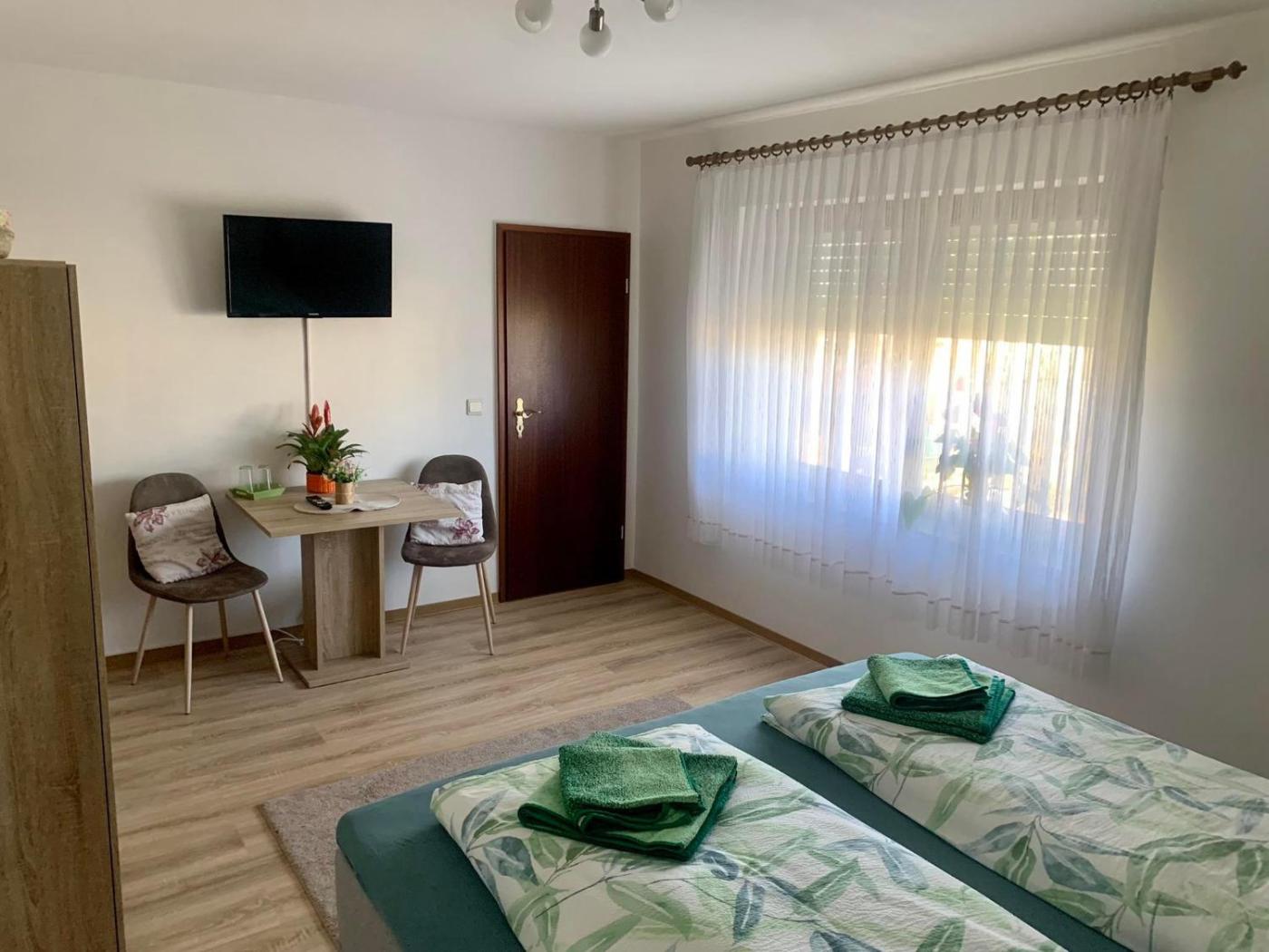 Doppelzimmer mit eigenem Bad. The spacious double room offers a private entrance, a tea and coffee maker, a balcony with garden views as well as a private bathroom featuring a shower. The unit offers 1 bed.
