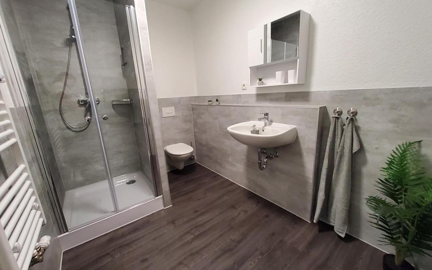 Apartment mit Dusche. This apartment features 1 living room, 1 separate bedroom and 1 bathroom with a shower. In the kitchen, guests will find a dishwasher, kitchenware, an oven and a microwave. This apartment features a coffee machine and a TV with satellite channels. The unit has 3 beds. ;