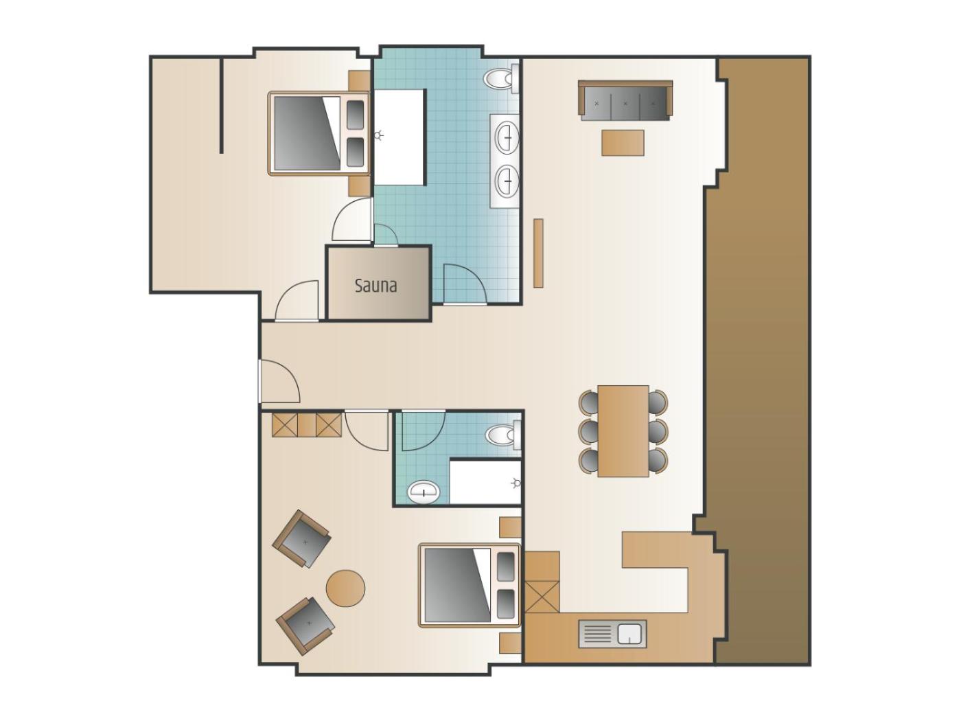 Apartment mit 2 Schlafzimmern und Bergblick. This apartments special feature is the sauna. This spacious apartment consists of 1 living room, 2 separate bedrooms and 2 bathrooms with a walk-in shower and a hairdryer. In the kitchen, guests will find a stovetop, a refrigerator, a dishwasher and kitchenware. Featuring a terrace with garden views, this apartment also provides a washing machine and a flat-screen TV with satellite channels. The unit offers 3 beds. ;