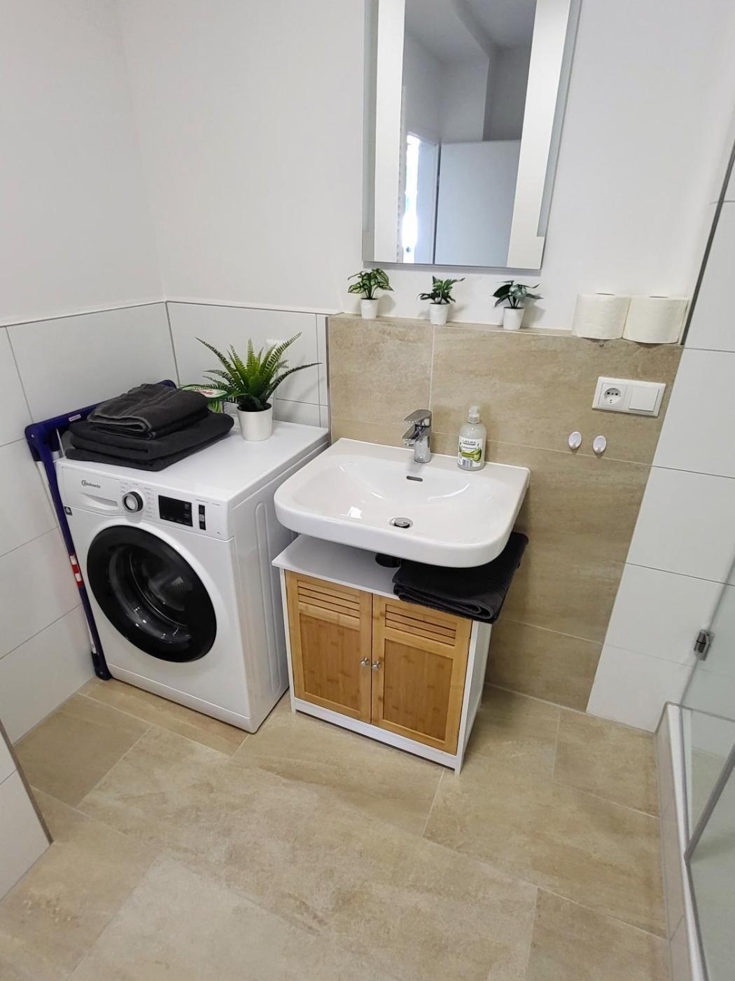 Apartment mit 1 Schlafzimmer. This apartment features 1 bedroom, a kitchen and 1 bathroom with a shower and a hairdryer. Meals can be prepared in the kitchen, which has a stovetop, a refrigerator, a dishwasher and kitchenware. The apartment features a washing machine, an electric kettle, heating, as well as a flat-screen TV with streaming services. The unit has 1 bed.