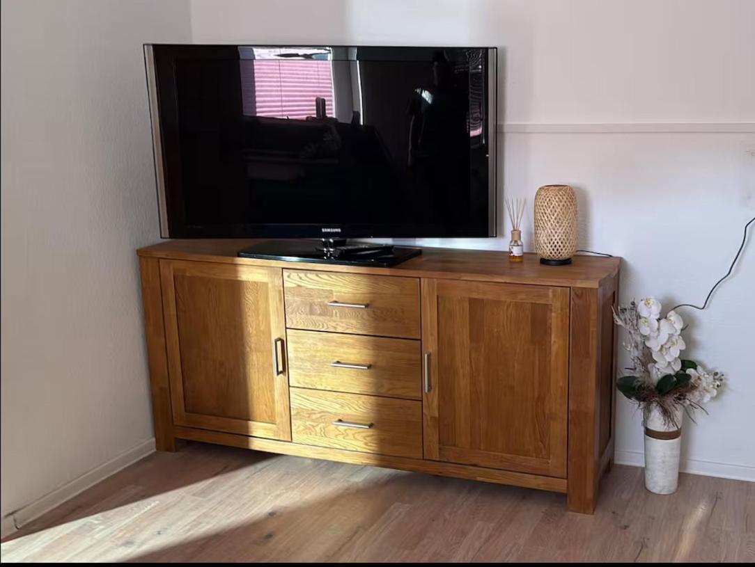 Zweibettzimmer. The twin room features a shared bathroom, air conditioning, a private entrance, as well as a seating area with a flat-screen TV. The twin room offers a dining area, a wardrobe, a carpeted floor, a TV, as well as a quiet street view. The unit offers 2 beds.