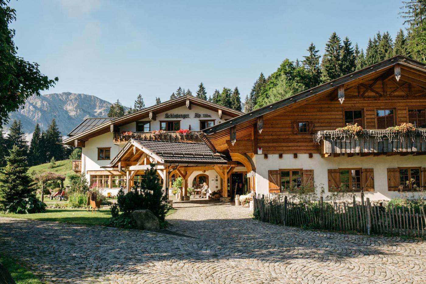 The Berghotel Schlossanger Alp is a great base for hiking and cycling in the scenic Allgäu countryside.
