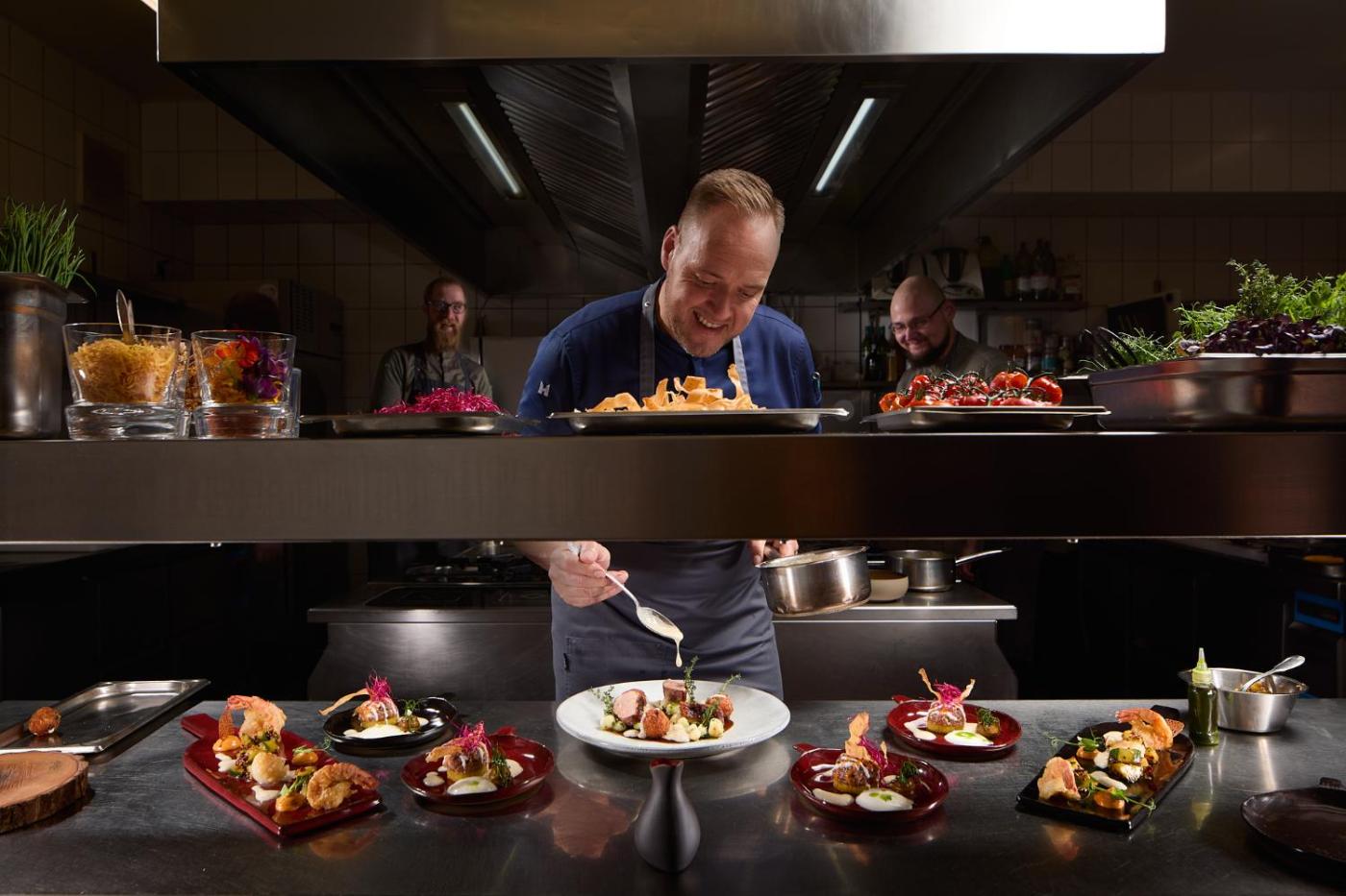 Frisch gefangener Fisch, regionale Gerichte und internationale Küche werden täglich im Restaurant Fackelgarten serviert. Im Café können Sie hausgemachte Kuchen genießen.