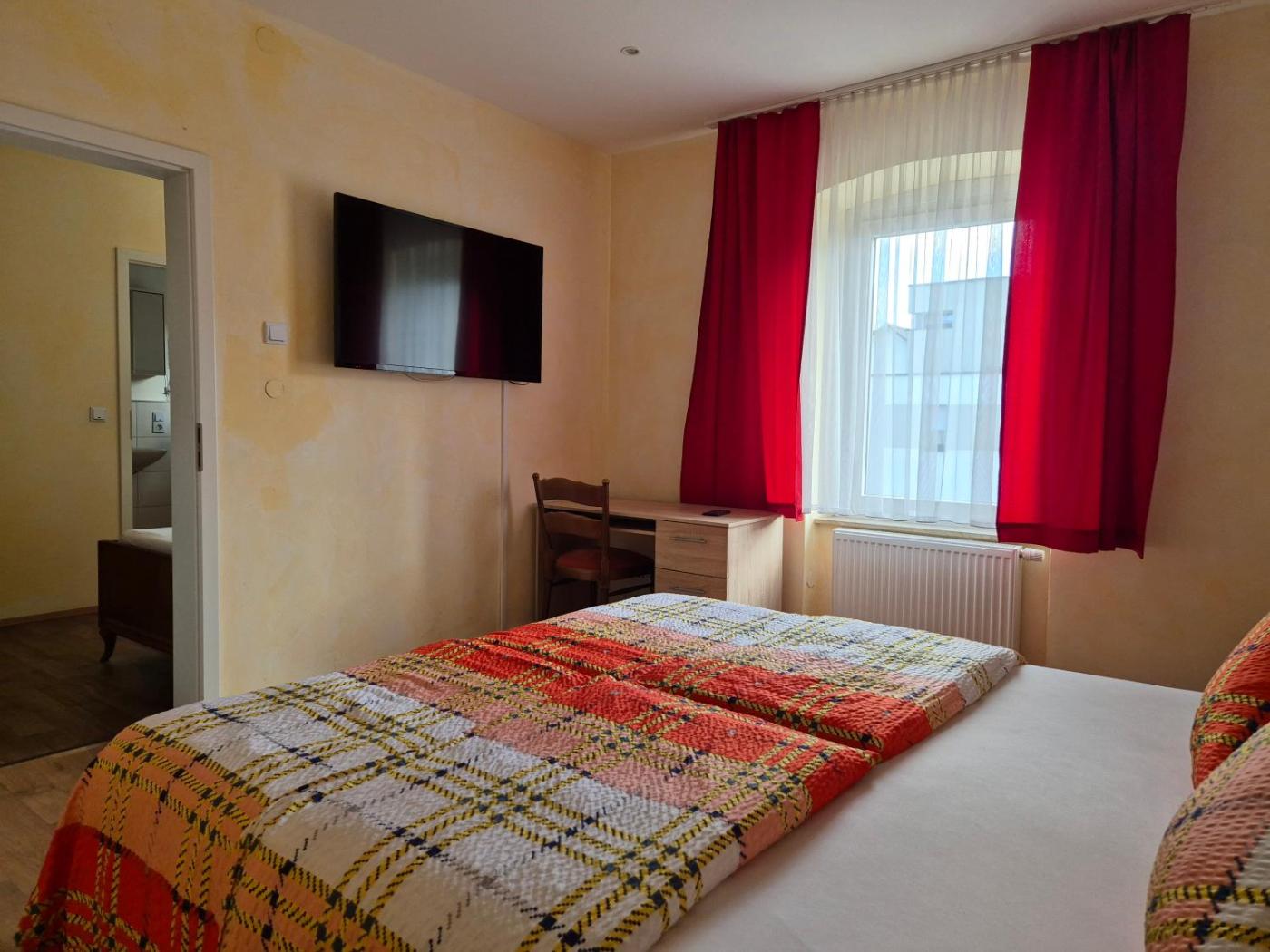 Doppelzimmer. Das geräumige Doppelzimmer verfügt über einen Kleiderschrank, Heizung sowie ein eigenes Bad mit einer Dusche und einem Haartrockner. Zu den weiteren Einrichtungen dieses Doppelzimmers gehört ein Flachbild-TV. Die Wohneinheit ist mit 2 Betten ausgestattet. ;
