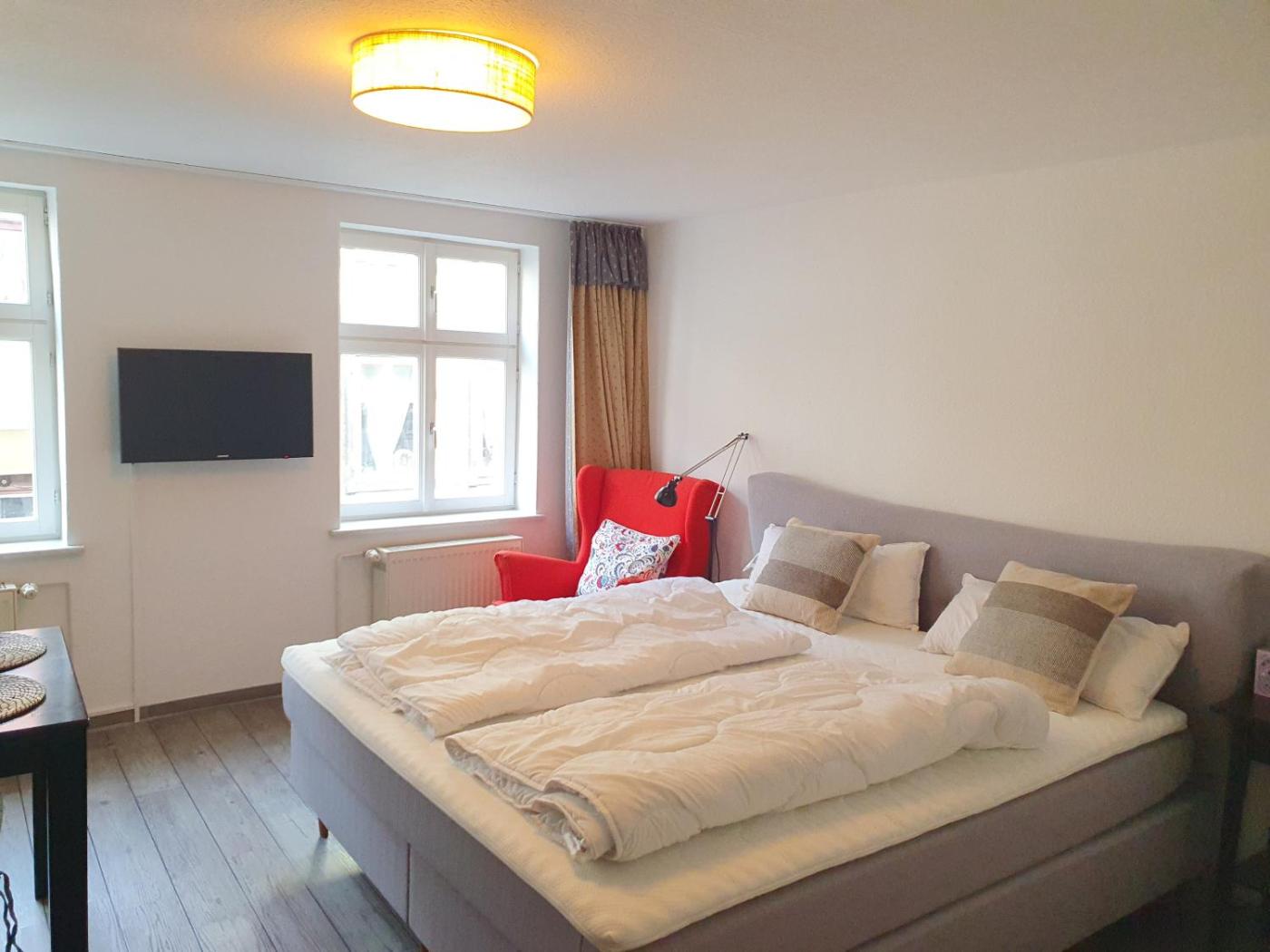 Die in Quedlinburg gelegene Unterkunft Bleibe am Kirchhof befindet sich 800 m von Bahnhof Quedlinburg und 700 m von Altstadt Quedlinburg entfernt. Sie bietet einen Sitzbereich. Kostenloses WLAN ist in der ganzen Unterkunft verfügbar und ein Privatparkplatz ist vor Ort verfügbar.