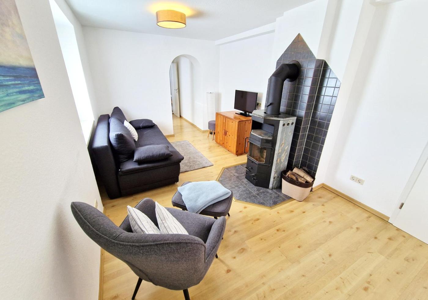 Apartment mit 2 Schlafzimmern. This apartments standout feature is the fireplace. This spacious apartment is comprised of 1 living room, 2 separate bedrooms and 1 bathroom with a bath and a shower. In the well-equipped kitchen, guests will find a stovetop, a refrigerator, a dishwasher and kitchenware. The apartment offers a private entrance, a tea and coffee maker, a seating area, a flat-screen TV with satellite channels, as well as ancourtyard view. The unit offers 5 beds.