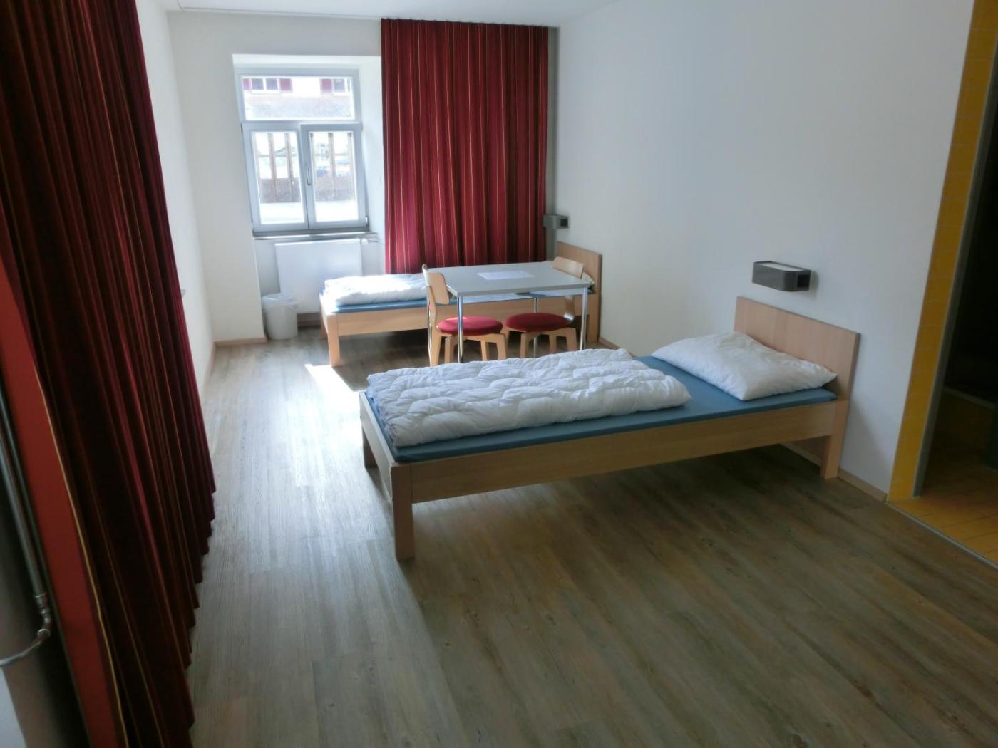 Einzelbett im Frauenschlafsaal. Helles, geräumiges Zimmer mit Tisch, Stühlen und Bad. ;