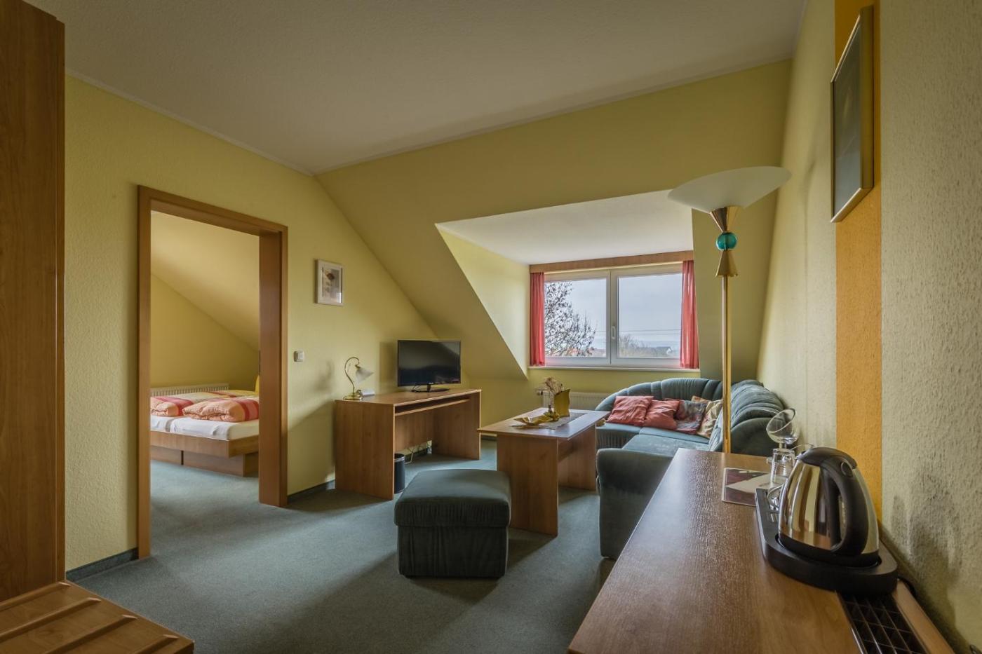 In der Unterkunft Hotel-Pension am Rosarium sind die Zimmer ausgestattet mit einem Schreibtisch, einem Flachbild-TV, einem eigenen Badezimmer, Bettwäsche und Handtüchern. Die Wohneinheiten bieten den Gästen einen Kleiderschrank und einen Wasserkocher.