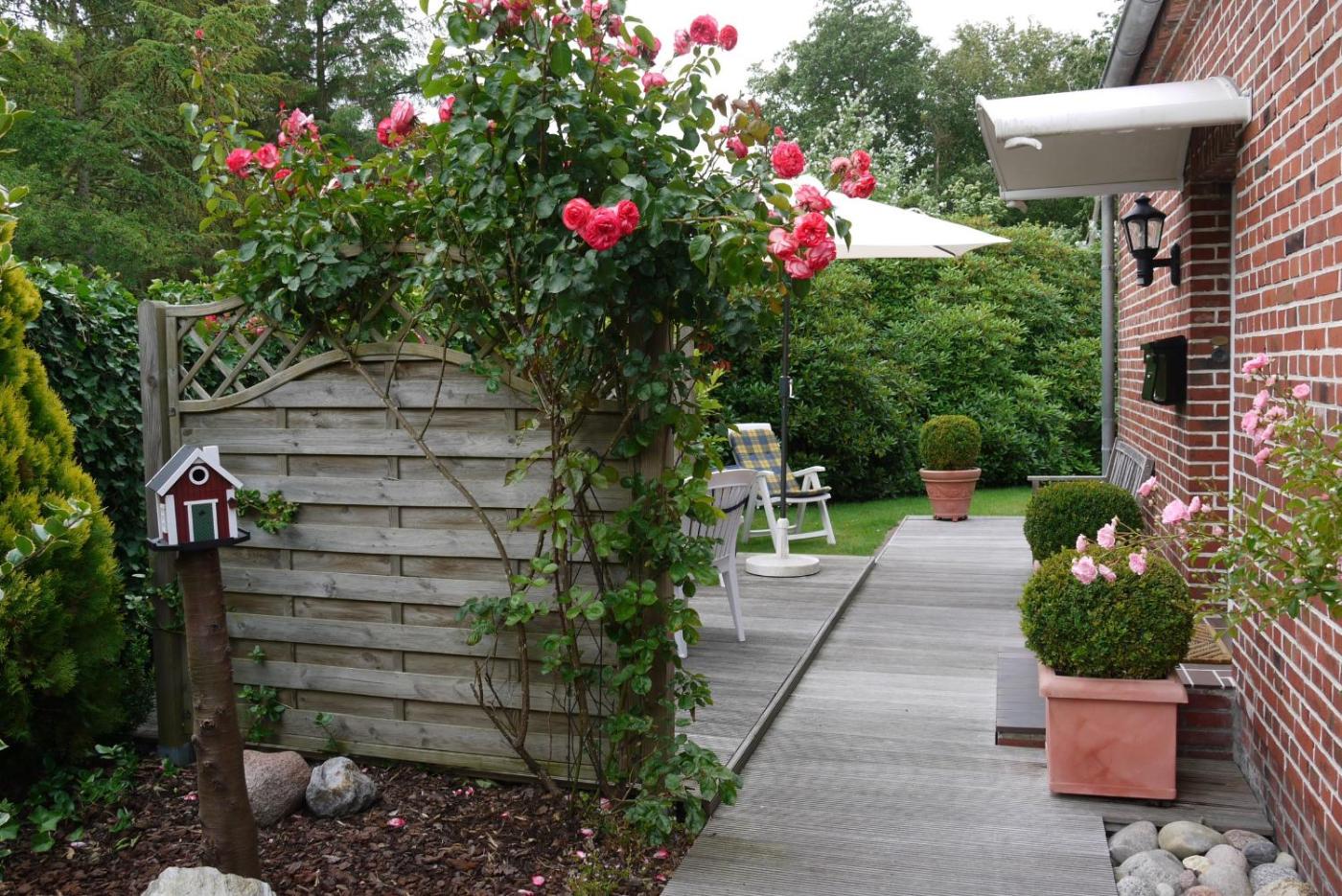 Apartment mit Terrasse. Boasting 2 bedrooms, this apartment has 1 bathroom with a shower, a seating area and terraceyou can relax. Guests will find a stovetop, a refrigerator, a dishwasher and kitchenware in the fully equipped kitchen. The apartment also comes with a barbecue. The apartment features a TV with satellite channels, a washing machine, a coffee machine, a wardrobe as well as garden views. The unit offers 2 beds.