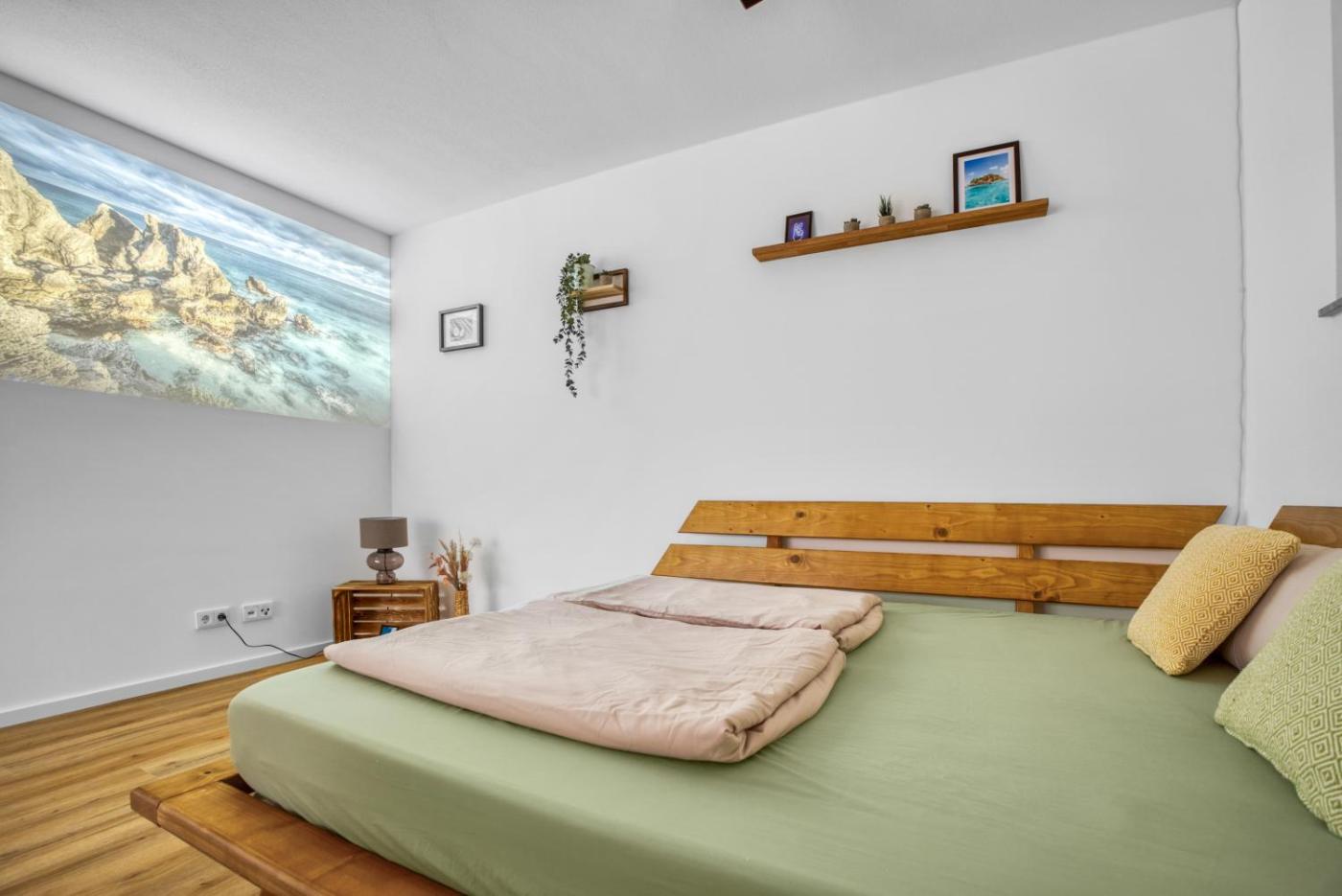 Diese Ferienwohnung ist ausgestattet mit 2 Schlafzimmern, einer Küche mit einem Kühlschrank und einem Geschirrspüler, 1 Badezimmer mit einer Dusche, einem Haartrockner und einer Waschmaschine. In dieser Ferienwohnung werden Handtücher und Bettwäsche zur Verfügung gestellt.