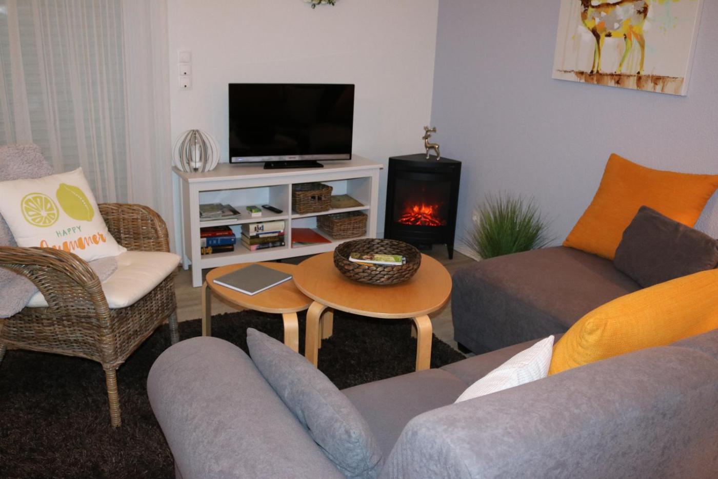 Apartment mit Terrasse. Featuring a private entrance, this spacious apartment also is comprised of 1 bedroom, a seating area and 1 bathroom with a walk-in shower and a hairdryer. Guests will find a stovetop, a refrigerator, a dishwasher and kitchenware in the fully equipped kitchen. The apartment also has a barbecue. Boasting a terrace with garden views, this apartment also offers a washing machine and a flat-screen TV with satellite channels. The unit offers 1 bed.