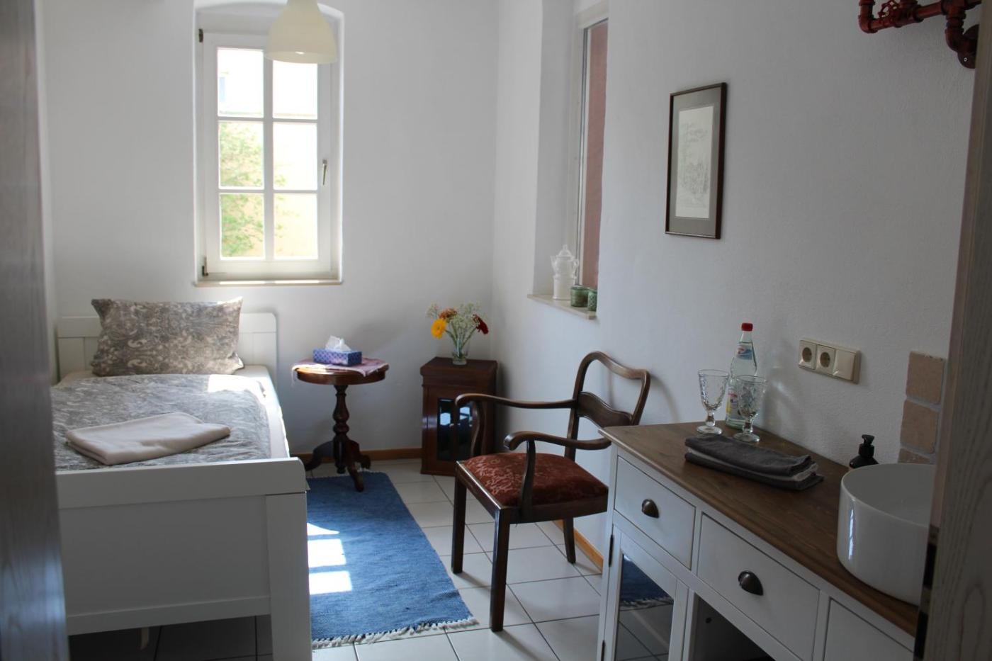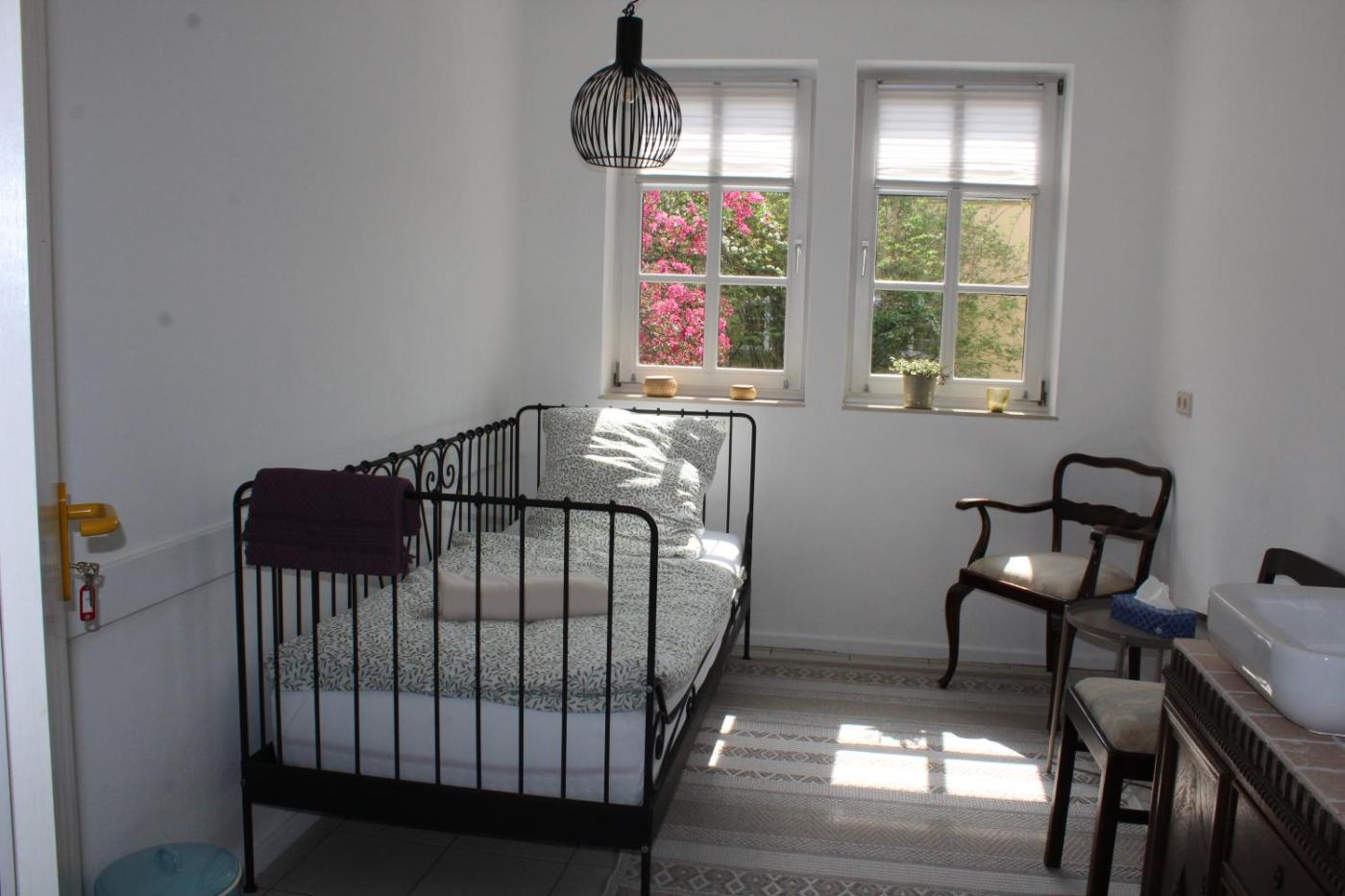 Einzelzimmer mit Gemeinschaftsbad. Dieses Einzelzimmer mit Gartenblick und einem Gemeinschaftsbad verfügt über einen Sitzbereich. Die Wohneinheit bietet 1 Bett. ;