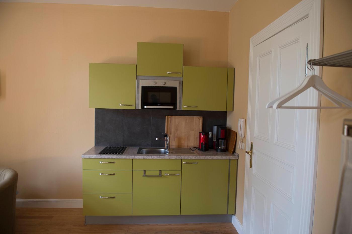 Studio. Das Studio verfügt über Kaffee- und Teezubehör, einen Sitzbereich sowie ein eigenes Badezimmer mit einer Dusche. Zum Kochen und Aufbewahren von Lebensmitteln steht Ihnen die Küchenzeile des Studios mit Kühlschrank zur Verfügung. Das Studio mit Heizung bietet einen TV, einen Essbereich und Parkettböden. In der Wohneinheit befindet sich 1 Bett.