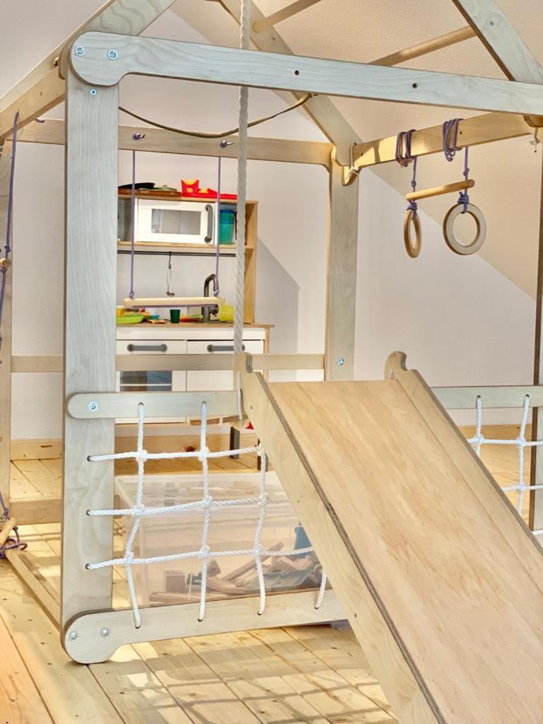 Die Gäste können in der Unterkunft Idyllisches Ferienhaus mit Spielzimmer und Garten einen Kinderspielplatz nutzen.