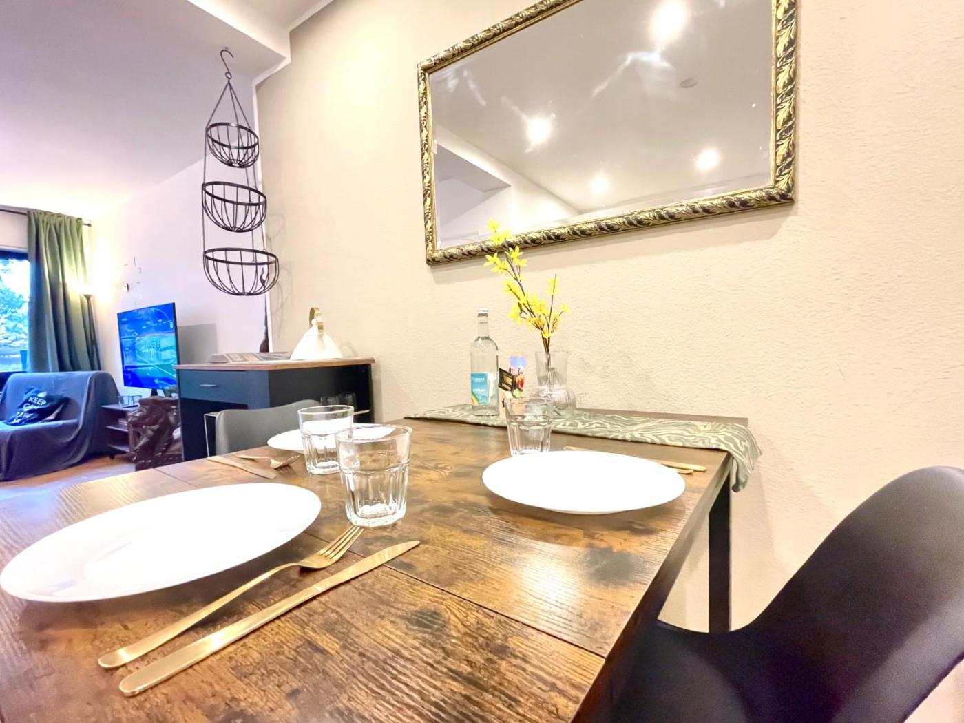 Apartment mit 1 Schlafzimmer. This apartment comes with 1 living room, 1 separate bedroom and 1 bathroom with a shower. Meals can be prepared in the kitchen, which features a stovetop, a refrigerator, a dishwasher and kitchenware. The apartment features a tea and coffee maker, a dining area, as well as a terrace and an outdoor dining area. The unit has 2 beds.