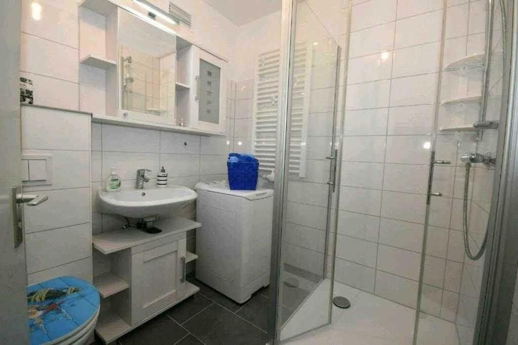 Apartment mit 2 Schlafzimmern und Dusche. This apartment comes with 2 bedrooms, kitchenette and 1 bathroom with a shower. The well-equipped kitchenette has a stovetop, a refrigerator, a dishwasher and a microwave. The apartment features a washing machine, a tea and coffee maker, as well as a balcony with sea views. The unit has 2 beds. ;