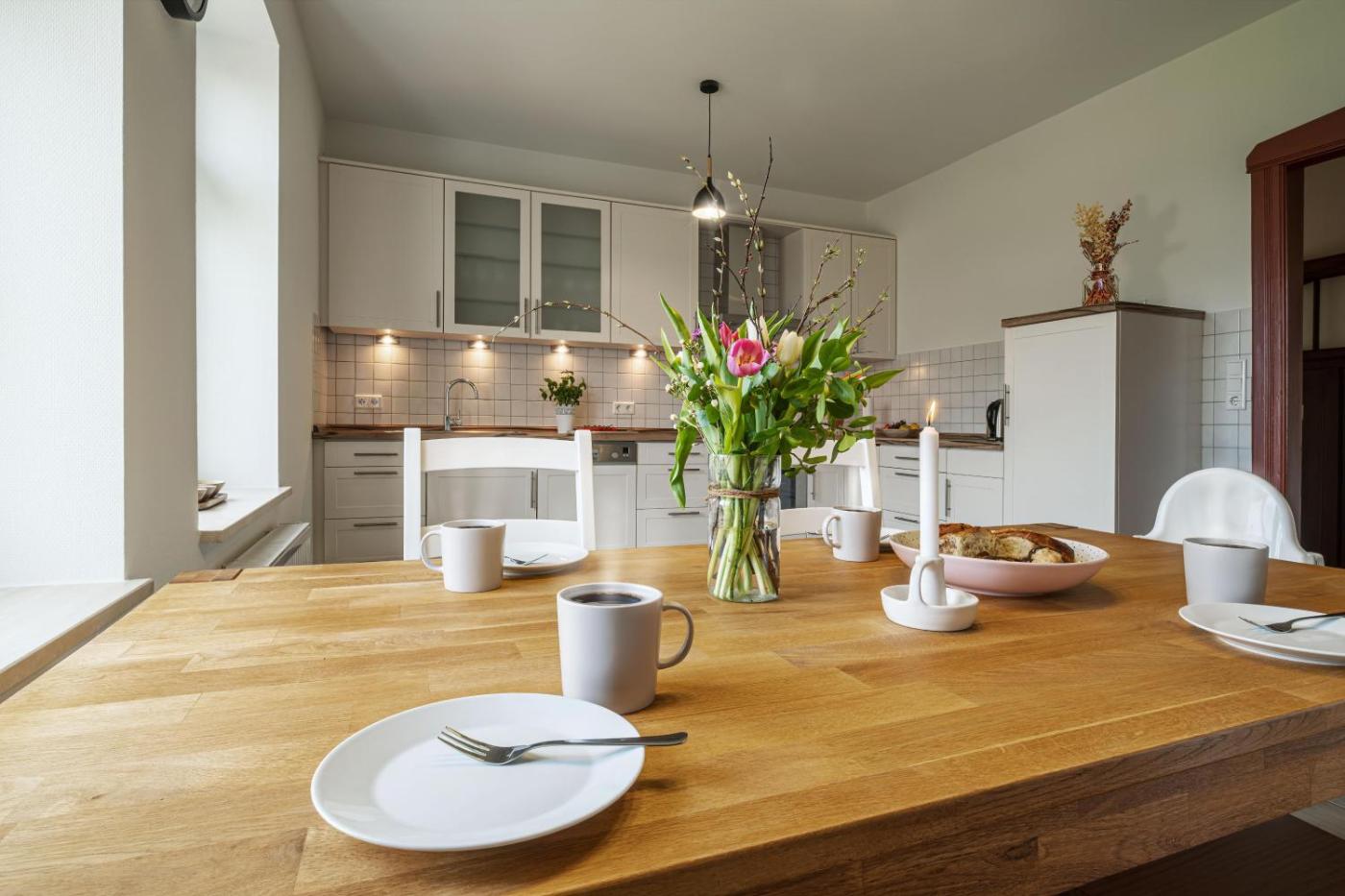 Apartment mit Terrasse. This apartments standout feature is the fireplace. Featuring 3 bedrooms, this spacious apartment offers 1 bathroom with a bath, a seating area and terraceyou can relax. Guests will find a stovetop, a refrigerator, a dishwasher and kitchenware in the well-fitted kitchen. The apartment also has a barbecue. The apartment offers a washing machine, a coffee machine, a wardrobe, a TV with satellite channels, as well as garden views. The unit has 3 beds.