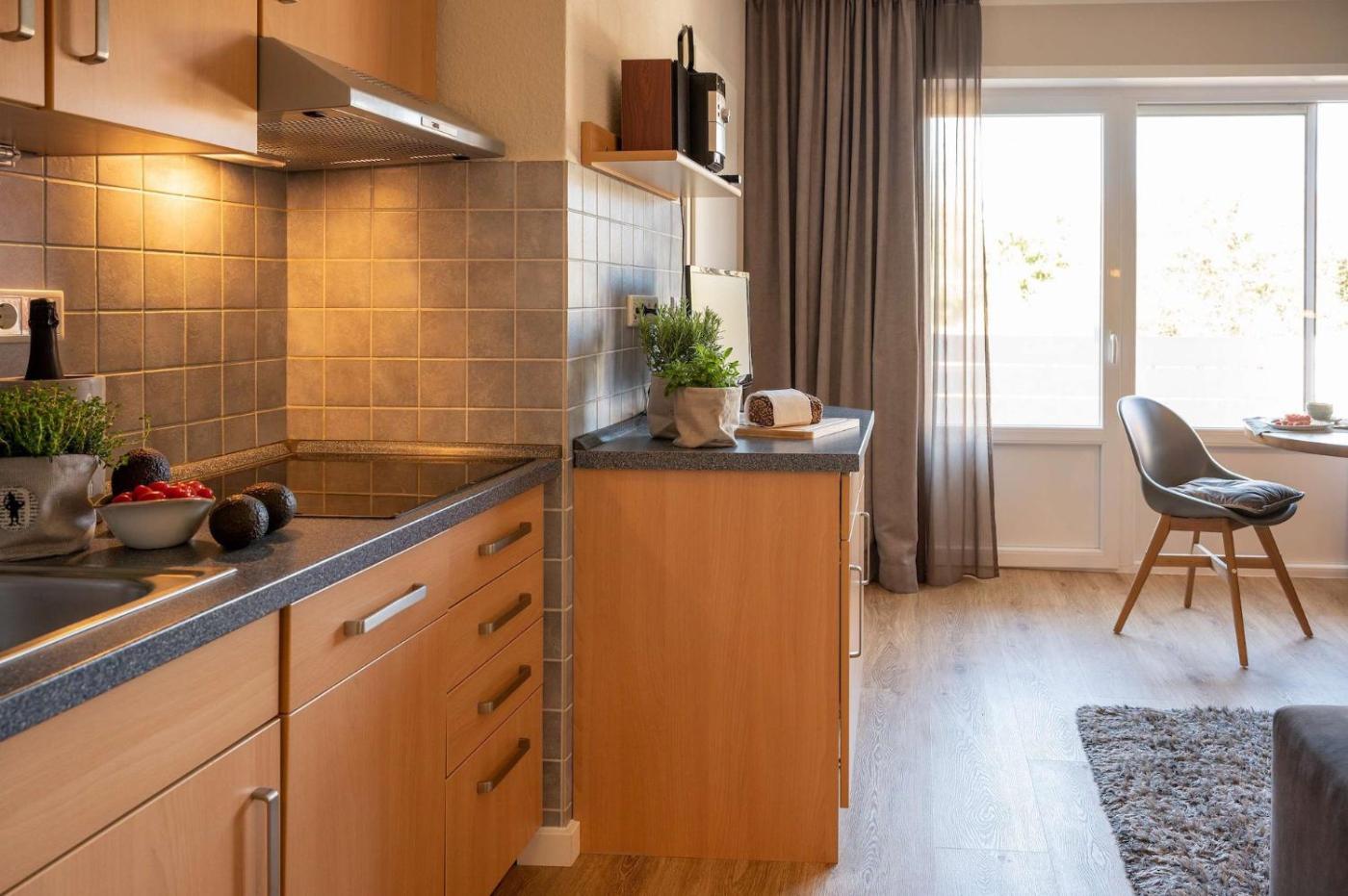 Apartment mit Terrasse. Boasting 1 bedroom, this apartment has 1 bathroom with a shower, a seating area and terraceyou can relax. Guests can make meals in the kitchen that has a stovetop, a refrigerator, a dishwasher and kitchenware. This apartment has a coffee machine, a wardrobe, a flat-screen TV with cable channels and an outdoor dining area. The unit offers 1 bed.