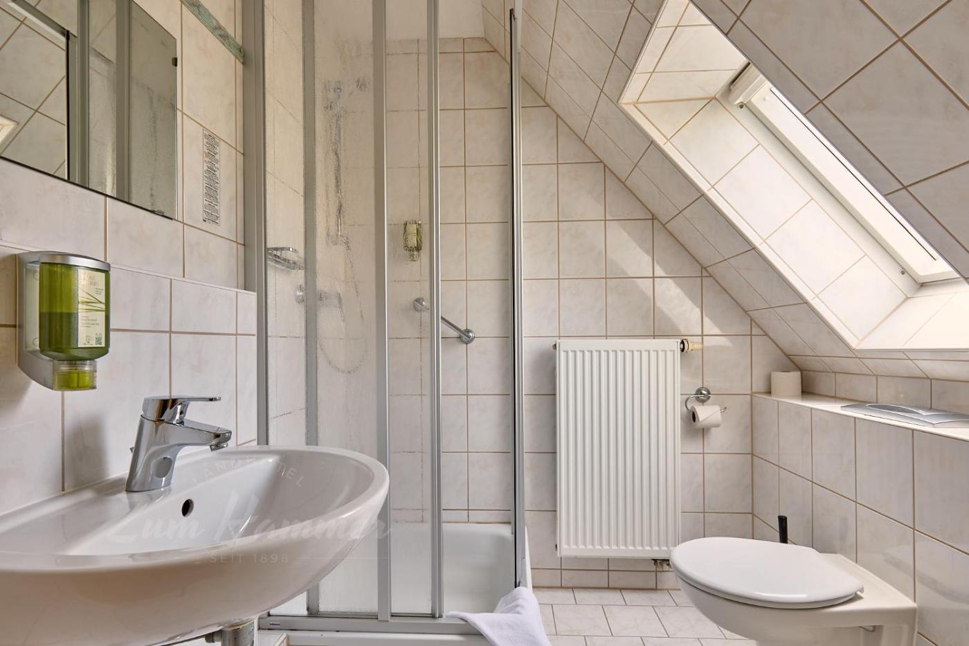 Alle Gästezimmer in der Unterkunft Landhotel Zum Hammer sind ausgestattet mit einem TV. Die Gästezimmer in der Unterkunft Landhotel Zum Hammer sind ausgestattet mit einem eigenen Badezimmer und ausgestattet mit einer Dusche.