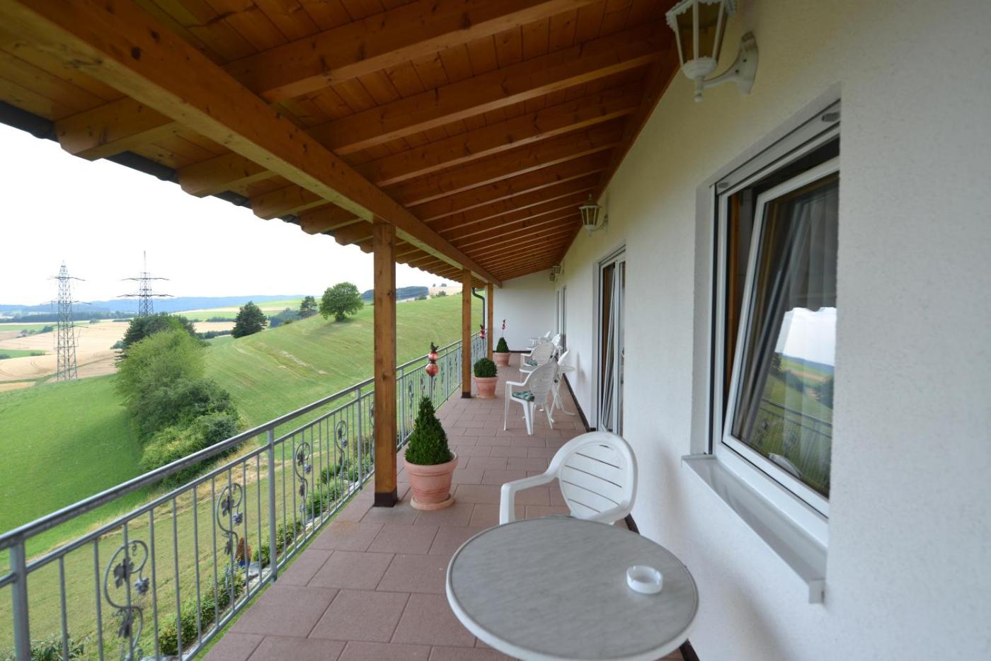 Alle Zimmer im Landhaus Waldfrieden verfügen über einen Südbalkon, einige auch über Sat-TV. Darüber hinaus wird ein reichhaltiges Frühstücksbuffet angeboten.