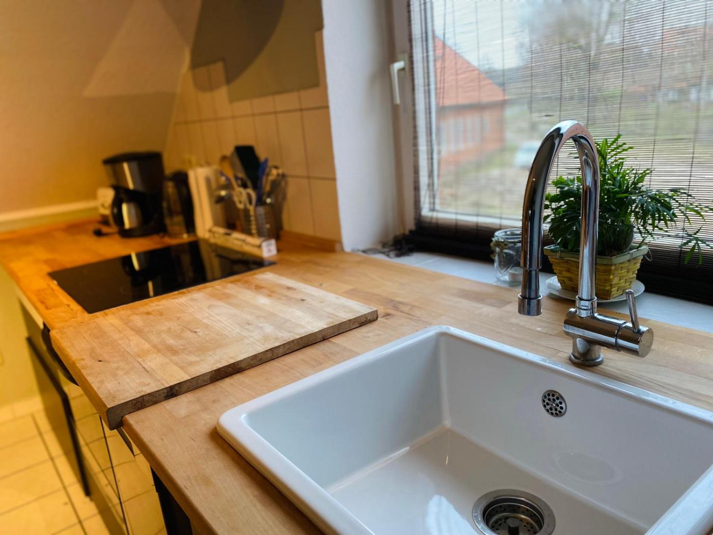 Apartment - Dachgeschoss. This spacious apartment includes 1 living room, 2 separate bedrooms and 1 bathroom with a bath and a shower. In the well-equipped kitchen, guests will find a stovetop, a refrigerator, kitchenware and an oven. The apartment offers a flat-screen TV with satellite channels, a coffee machine, a dining area, a sofa as well as garden views. The unit has 3 beds.