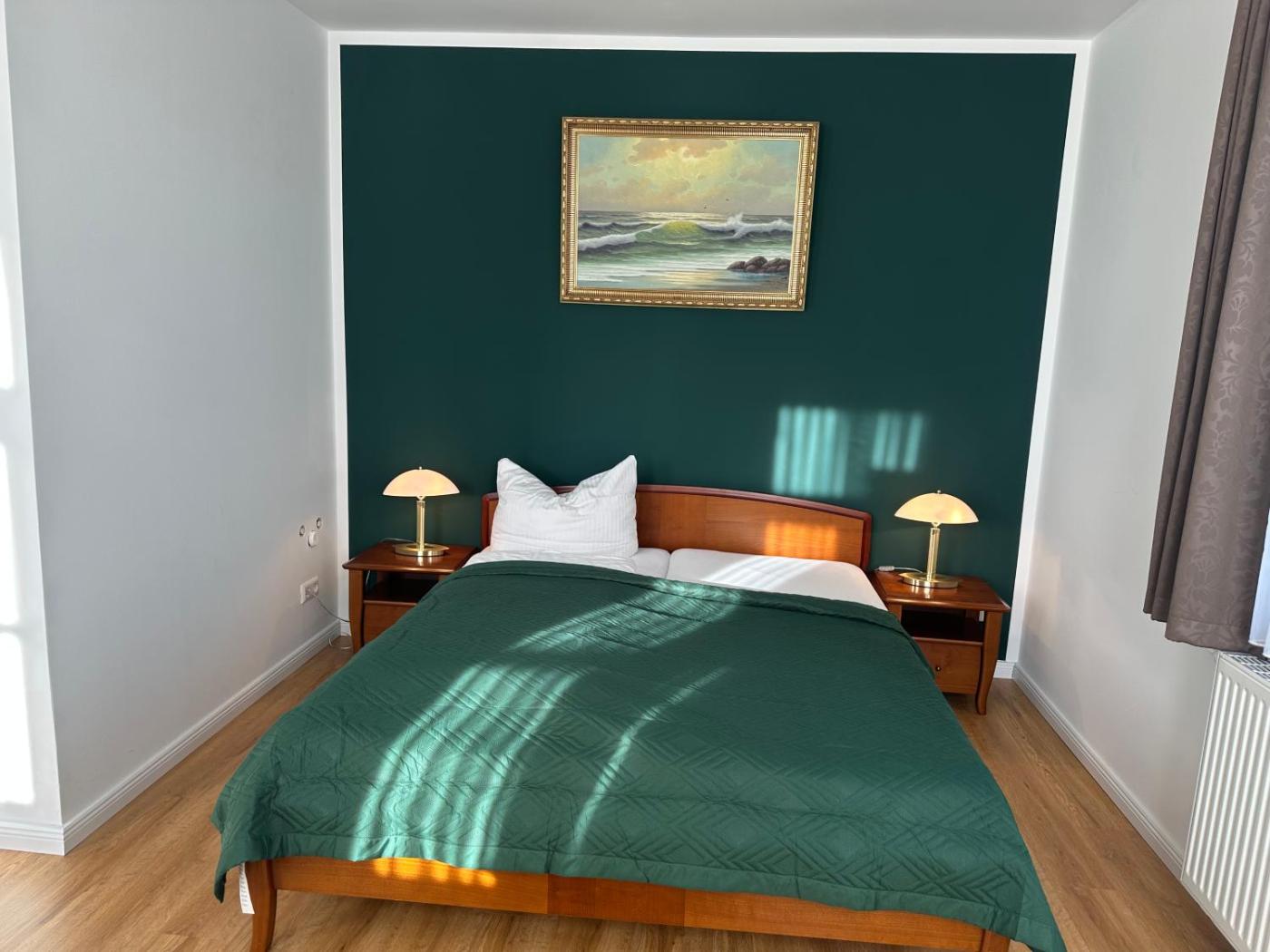 Dreibettzimmer. Decorated in neutral shades, this apartment features a private bathroom. ;