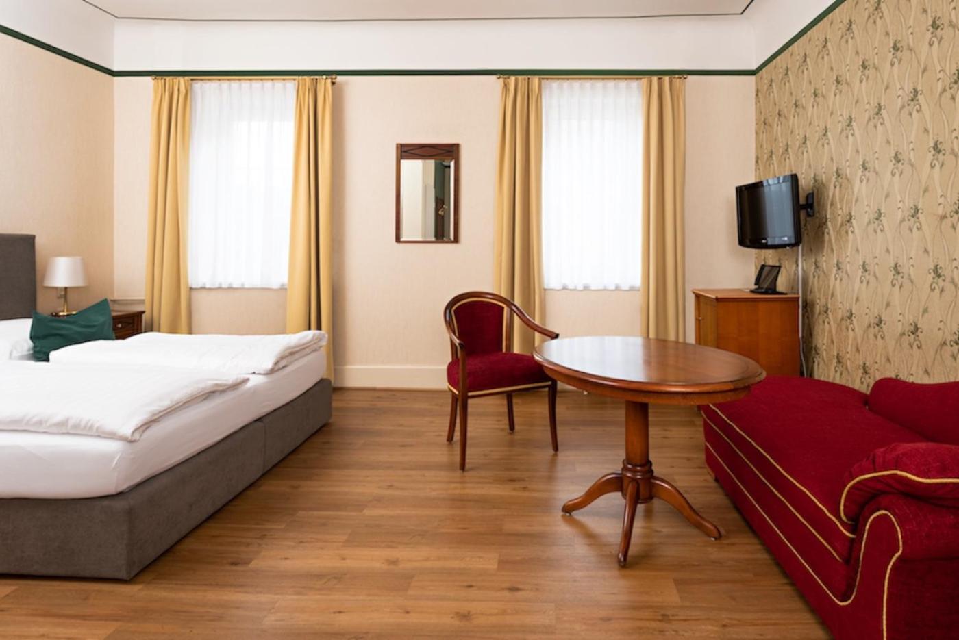 Comfort Doppelzimmer. Das Zimmer im klassischen Stil bietet einen Flachbild-TV, einen Schreibtisch und einen Sitzbereich. Dieses geräumige Zimmer ist mit einer Couch ausgestattet. ;
