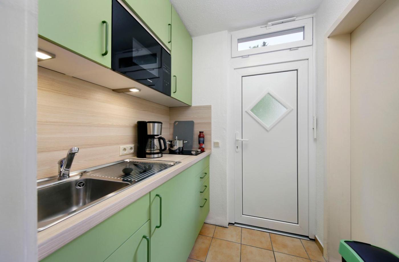 Ferienhaus. This holiday home is comprised of 1 living room, 2 separate bedrooms and 1 bathroom with a shower. The well-fitted kitchen features a stovetop, a refrigerator, kitchenware and a microwave. Featuring a patio, this holiday home also offers a coffee machine, a seating area and a TV. The unit offers 2 beds. ;