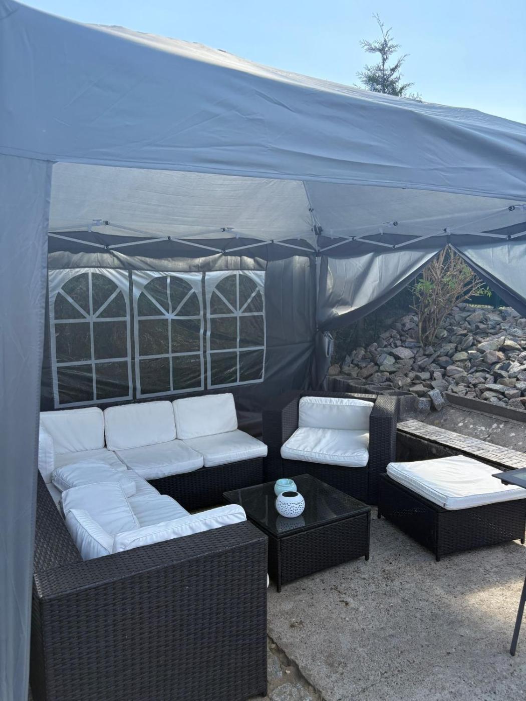 Diese Ferienwohnung mit einer Terrasse und Gartenblick hat 1 Schlafzimmer, ein Wohnzimmer, einen Flachbild-TV, eine gut ausgestattete Küche mit einem Kühlschrank und einem Ofen sowie 1 Badezimmer mit einer Dusche.