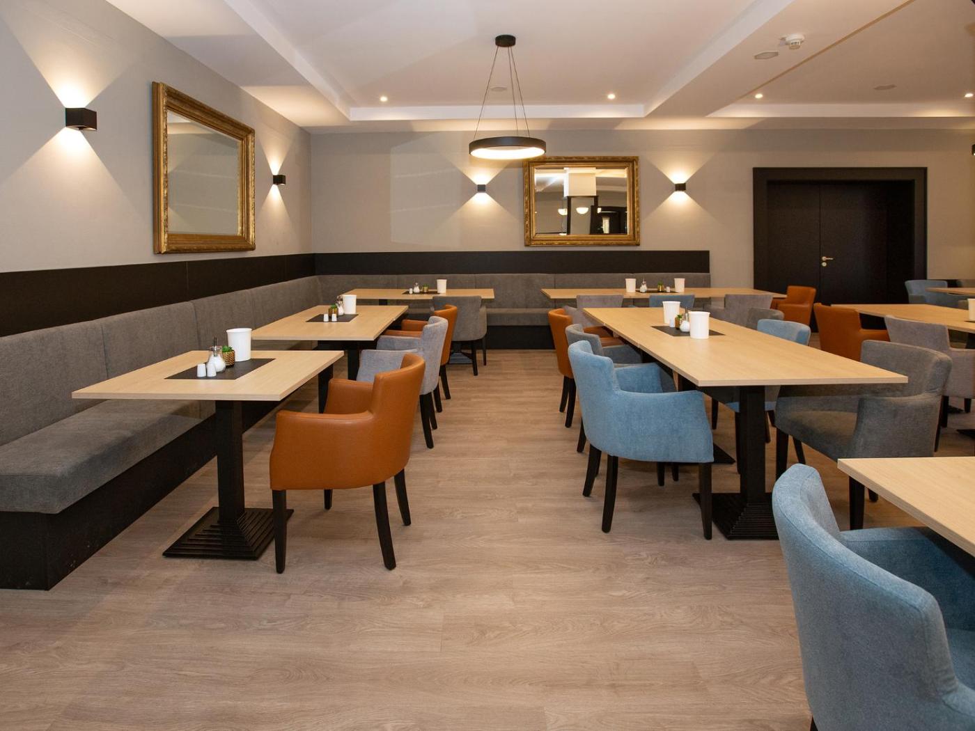 Gäste der Unterkunft DORMERO Hotel Worms können ein als Buffet angebotenes Frühstück genießen.