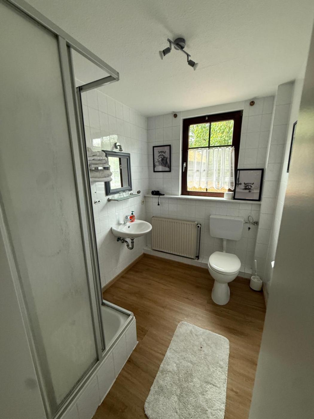 Doppelzimmer mit eigenem Bad. The double room provides a seating area, a wardrobe, as well as a private bathroom featuring a shower and a hairdryer. This double room offers heating, a flat-screen TV and a quiet street view. The unit offers 2 beds. ;