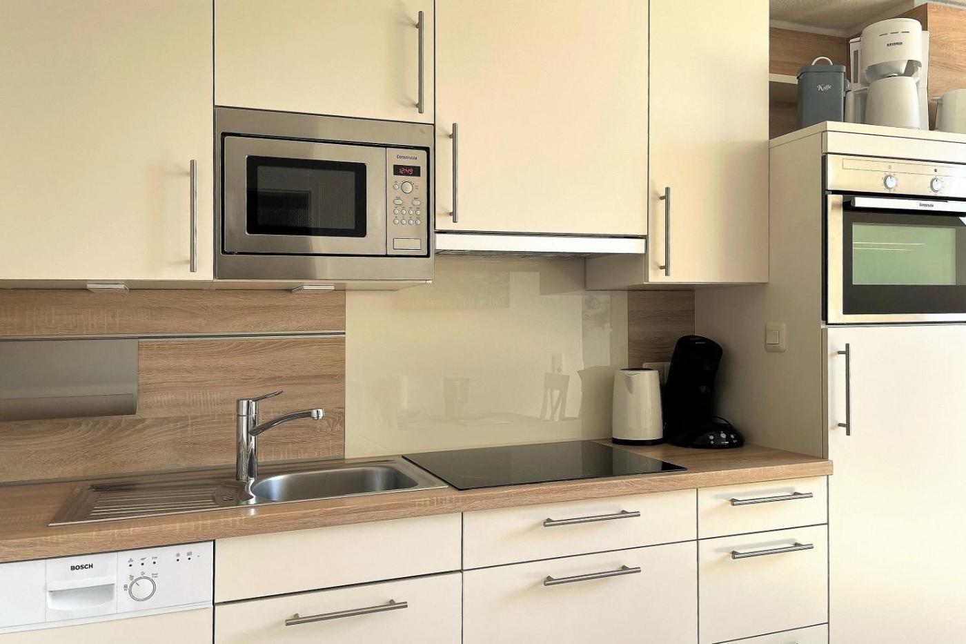 Die Unterkunft Apfelblüte, Badestraße hat 2 Schlafzimmer, 1 Badezimmer, eine gut ausgestattete Küchenzeile, einen TV mit Satellitenkanälen und eine Sauna.